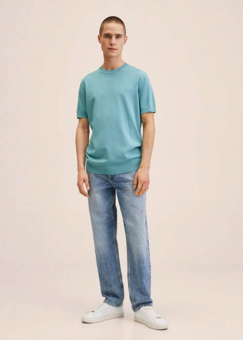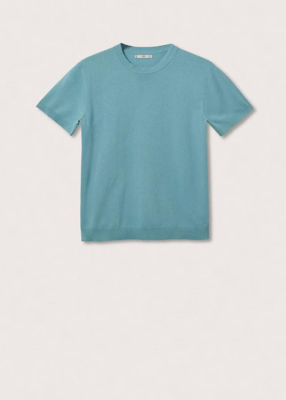 Tejido de punto fino Diseño estándar Diseño recto Tejido de algodón sostenible Cuello redondo Manga corta Las prendas etiquetadas como Committed son productos que han sido confeccionadas con fibras y/o procesos de producción sostenible, reduciendo así su impacto ambiental. El objetivo de Mango es respaldar la implementación de prácticas más comprometidas con el medio ambiente, aumentando así, el número de prendas sostenibles en su colección.