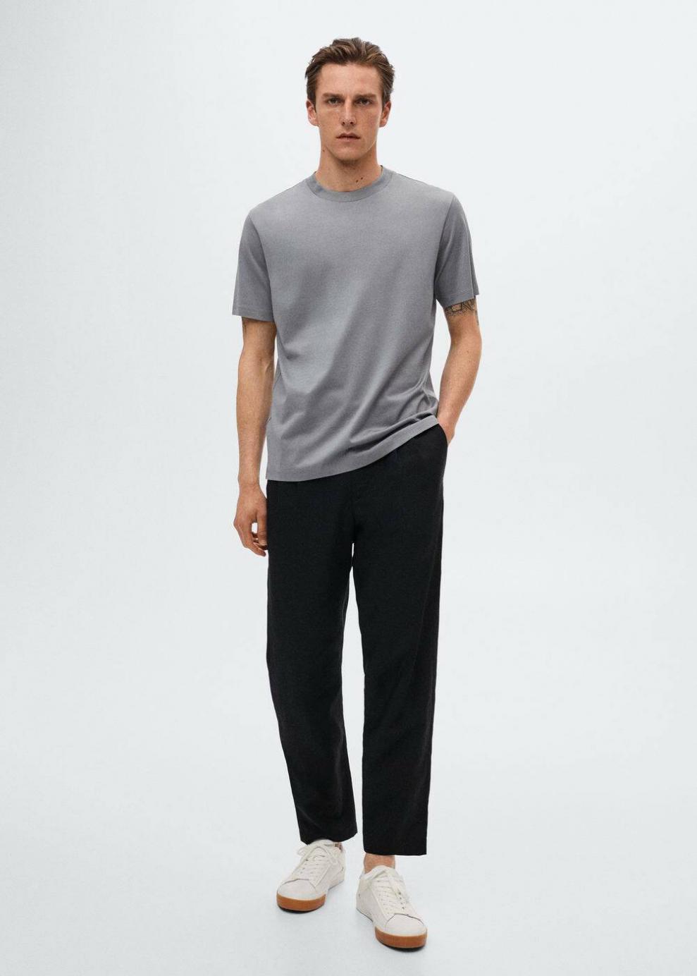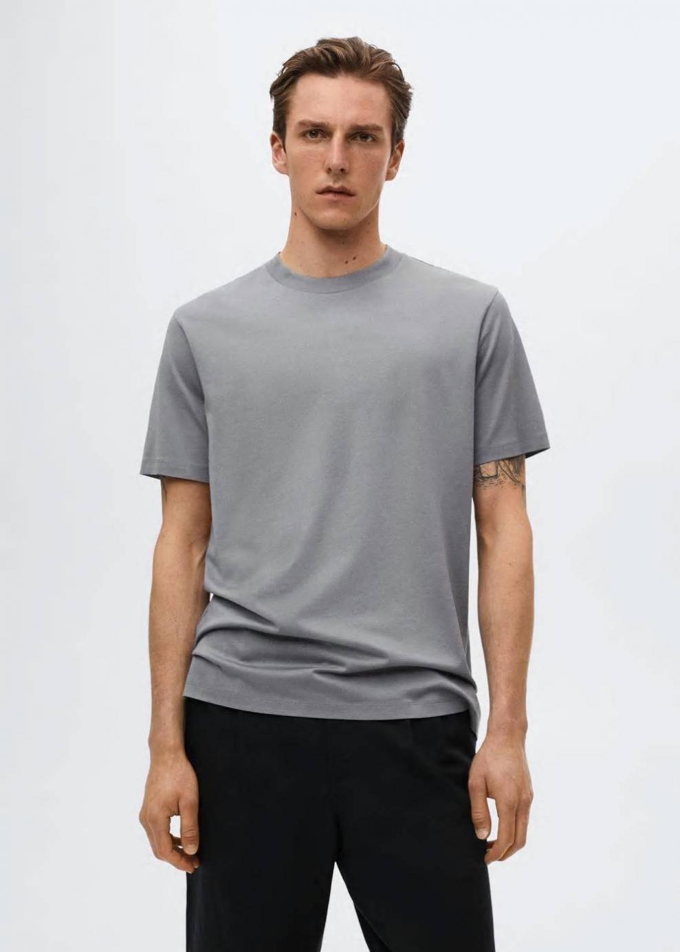 Tejido de algodón sostenible Regular fit Cuello redondo Manga corta Acabado mercerizado Las prendas etiquetadas como Committed son productos que han sido confeccionadas con fibras y/o procesos de producción sostenible, reduciendo así su impacto ambiental. El objetivo de Mango es respaldar la implementación de prácticas más comprometidas con el medio ambiente, aumentando así, el número de prendas sostenibles en su colección.