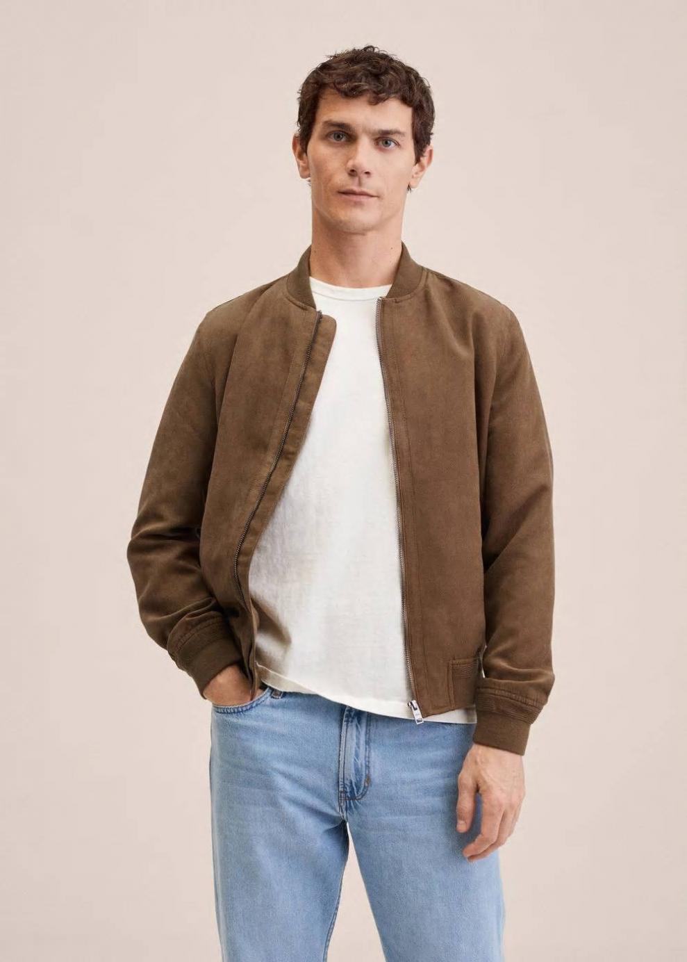Diseño bomber Diseño corto Efecto ante Tejido de poliéster reciclado Manga larga Bolsillos de cremallera laterales Terminaciones elásticas Cierre de cremallera Forro interior Bolsillo interior de cremallera El modelo mide 185 cm y lleva una talla M Las prendas etiquetadas como Committed son productos que han sido confeccionadas con fibras y/o procesos de producción sostenible, reduciendo así su impacto ambiental. El objetivo de Mango es respaldar la implementación de prácticas más comprometidas con el medio ambiente, aumentando así, el número de prendas sostenibles en su colección.