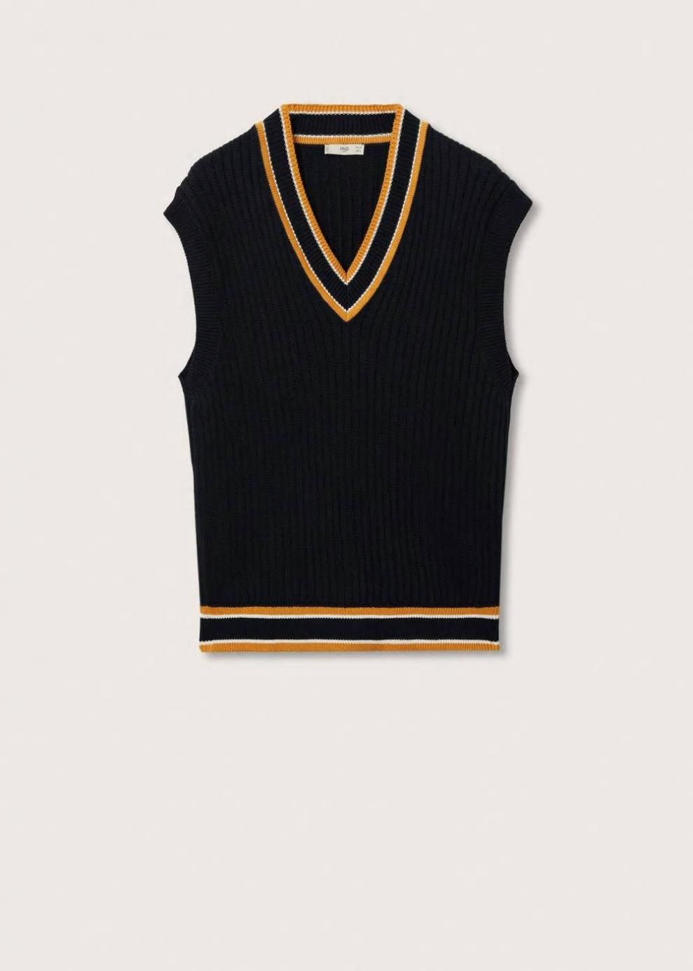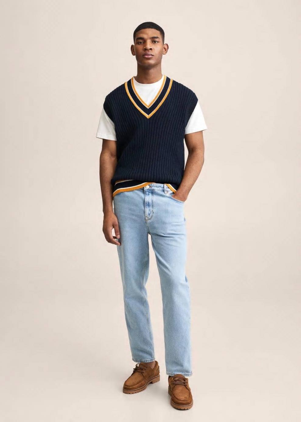 Diseño varsity Diseño canalé Tejido mezcla de algodón Cuello pico Sin mangas El modelo mide 190 cm y lleva una talla L
