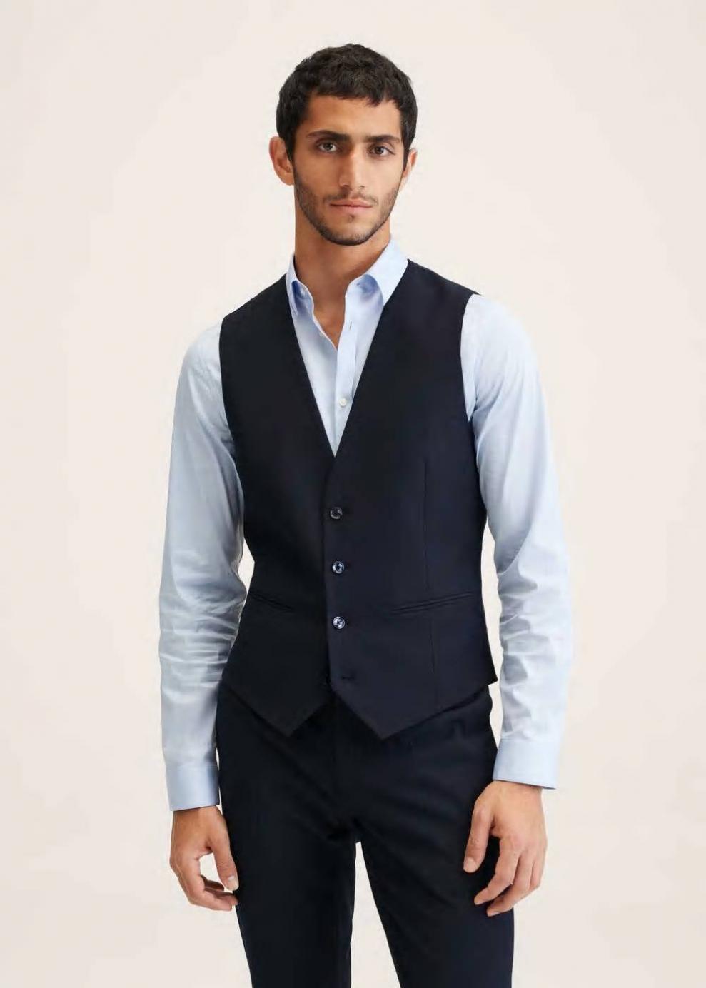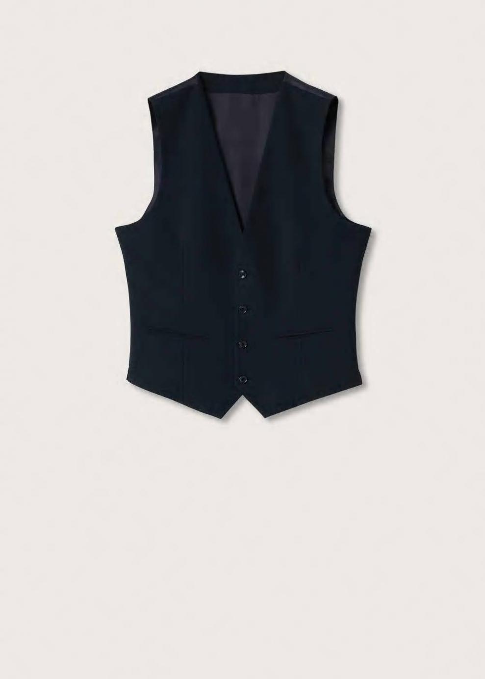 Super slim fit Tejido mezcla de poliéster reciclado Diseño medio Cuello pico Sin mangas Dos bolsillos de ribete en la parte delantera Cierre de botones Hebilla ajustable Forro interior Bolsillo interior El modelo mide 185 cm y lleva una talla M El modelo Super Slim es el fit más ajustado que encontrarás en nuestra colección de trajes. Se ha diseñado en diferentes colores y estampados para vestir distintos momentos del día y ajustarse a tu personalidad. Ideal para eventos y celebraciones informales. Combínalo con una corbata y camisa si quieres darle un aire más clásico y formal.