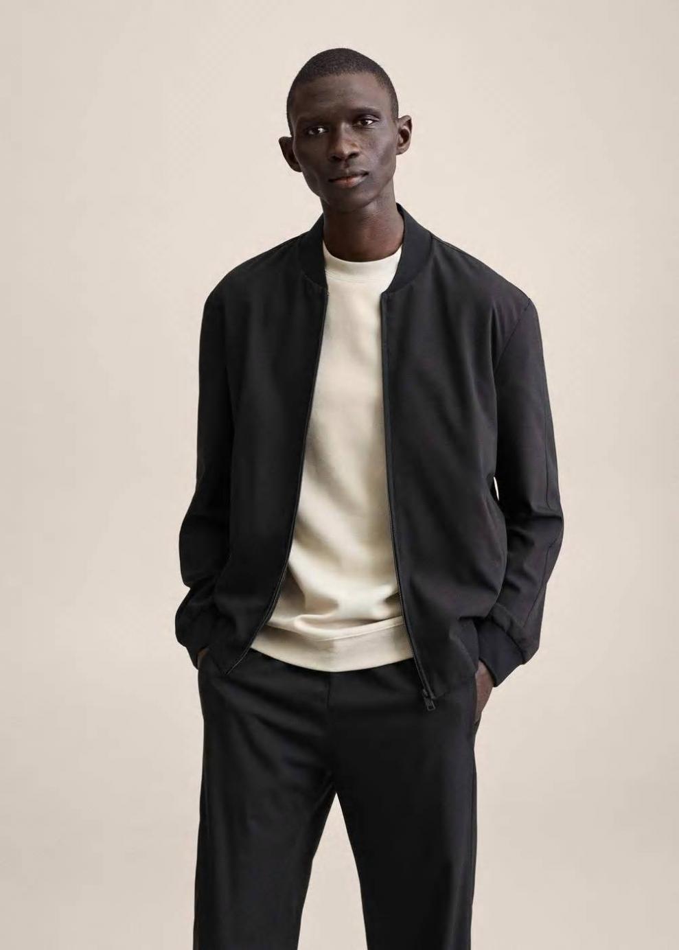 Colección Empacable Diseño bomber Diseño corto Coolmax® es un tejido especial que ayuda a expulsar la humedad de la piel, con lo cual, en climas fríos permite mantener el cuerpo seco y caliente, en climas cálidos, destaca por su ligereza y frescura Cuello bomber Manga larga Dos bolsillos laterales Cierre de cremallera Terminaciones elásticas La selección Performance incluye prendas confeccionadas con fibras técnicas que te mantendrán intacto y, sobre todo, cómodo durante todo el día, hagas lo que hagas y vayas donde vayas. Esta selección de alto rendimiento incluye una amplia gama de características avanzadas como tejidos bi-stretch, de secado rápido, fácil planchado, termorreguladores, transpirables o repelentes al agua, organizadas en cuatro categorías generales: Termorregulador, Funcional, Fácil Cuidado y Confort.