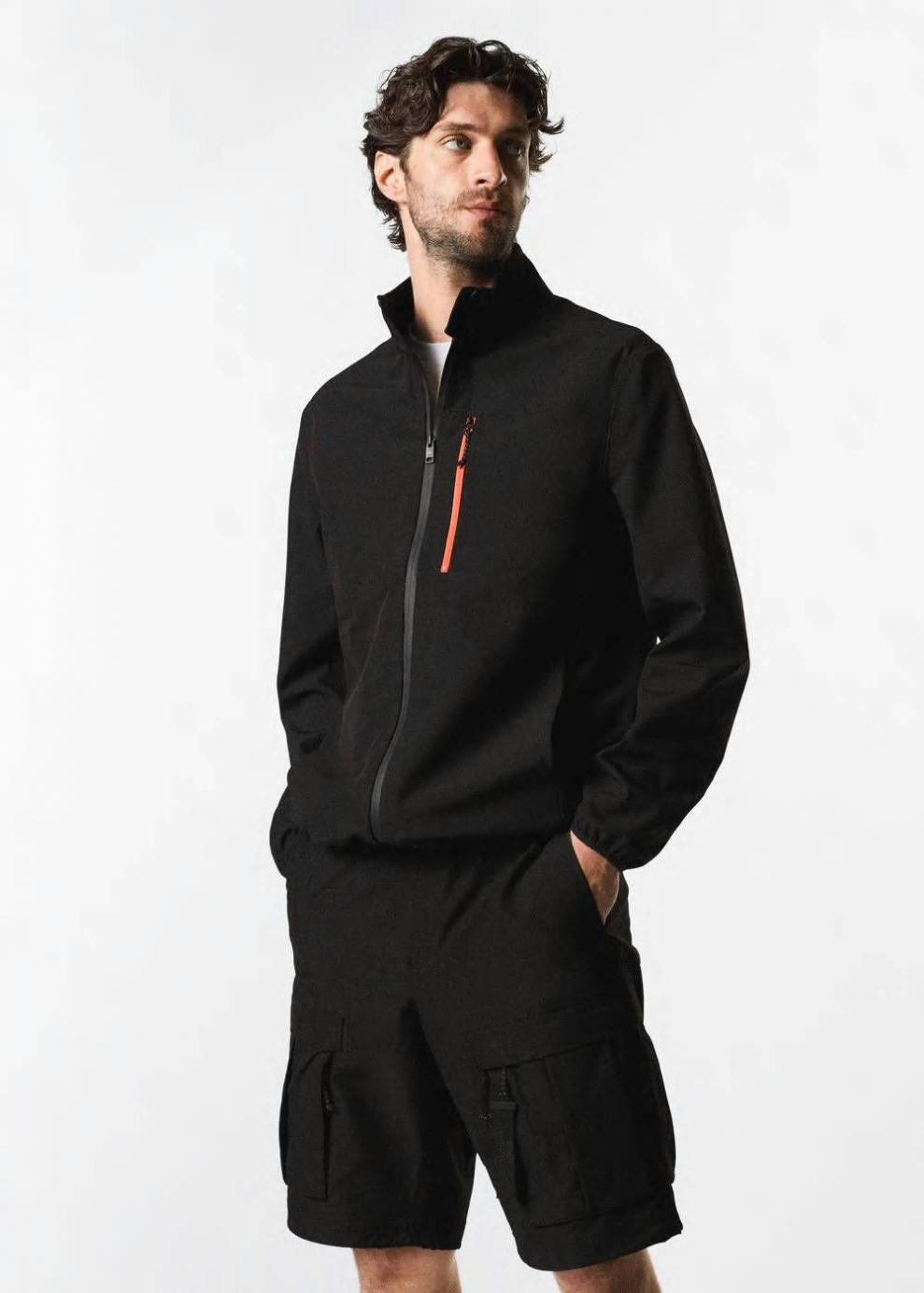 Exclusivo Online Colección Improved Tejido técnico Water proof: Tejido técnico a prueba de agua Windproof: Tejido a prueba de viento Cuello alto Manga larga Cierre de cremallera Dos bolsillos laterales de cremallera Bolsillo de cremallera en contraste en el pecho El modelo mide 185 cm y lleva una talla M IMPROVED es una colección cápsula diseñada con materiales de alta calidad y sostenibles que evocan una estética minimal y funcional. Cada prenda de esta colección esta diseñada con tejidos que ofrecen cualidades avanzadas – como la protección contra el viento o la impermeabilidad – pensadas para afrontar cualquier imprevisto en tus excursiones de verano a la montaña.