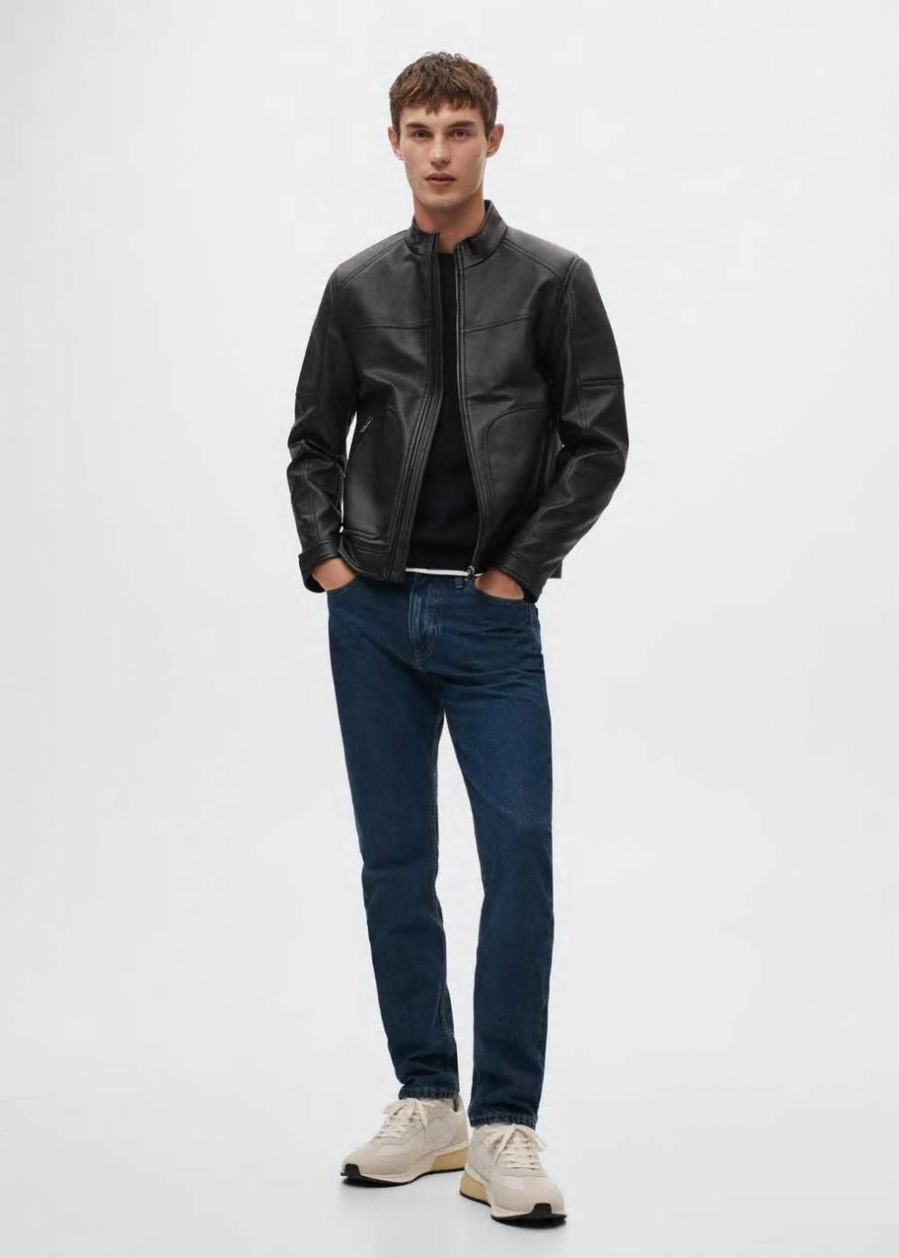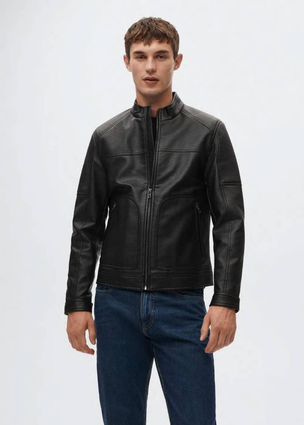 Efecto piel Cuello alto Manga larga Forro interior Bolsillo interior Dos bolsillos laterales de cremallera El modelo mide 187 cm y lleva una talla M