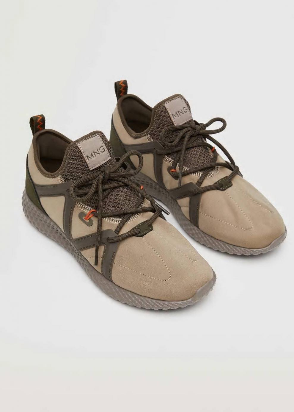 Diseño combinado Tejido stretch Tiras laterales Punta redonda Suela con relieve Cierre de cordones