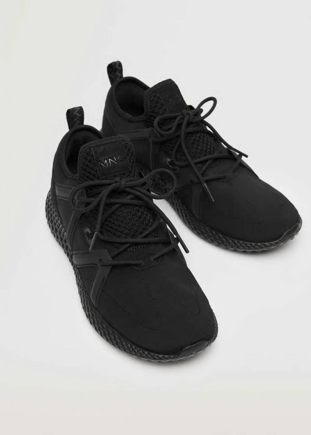 Diseño combinado Tejido stretch Tiras laterales Punta redonda Suela con relieve Cierre de cordones