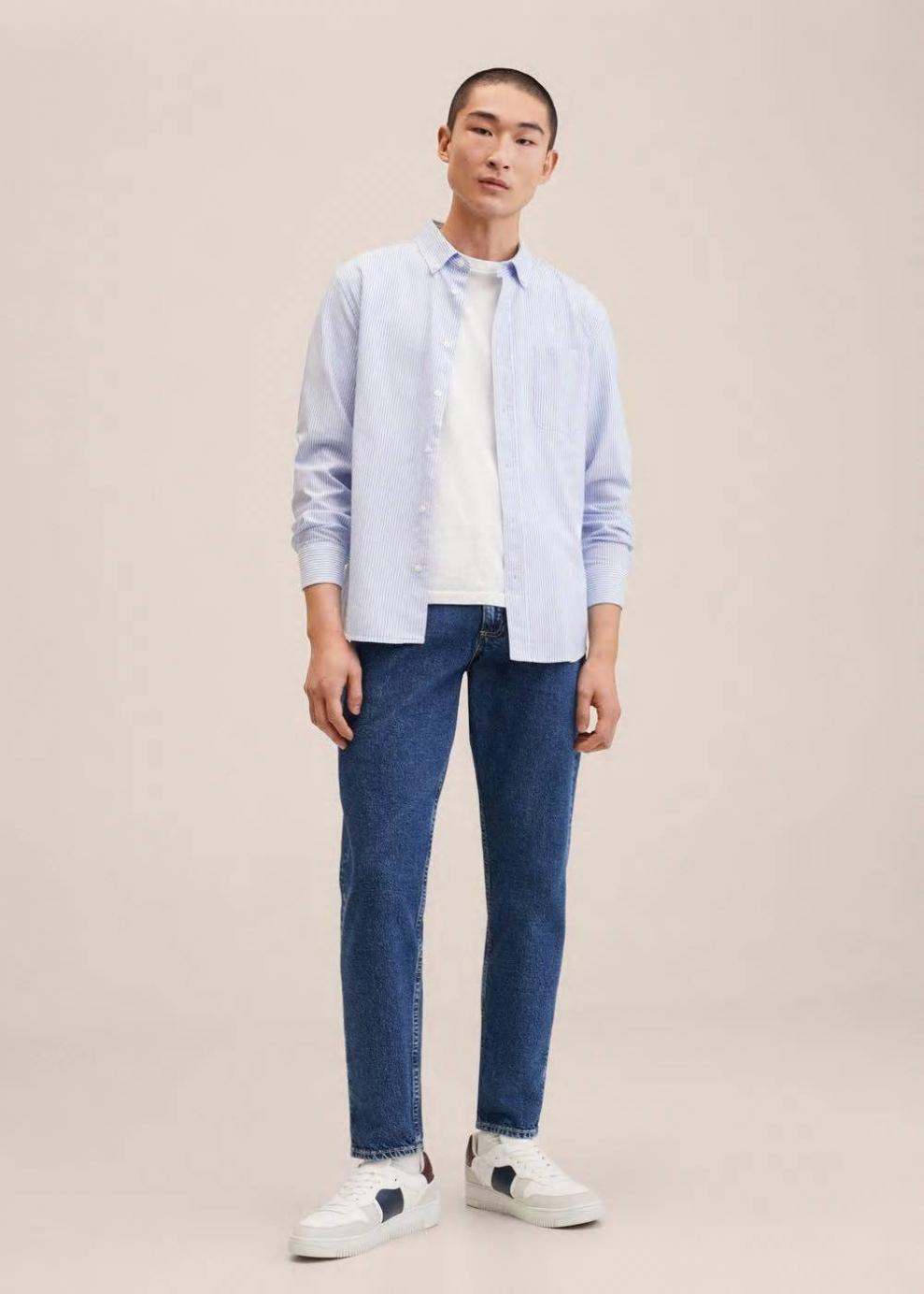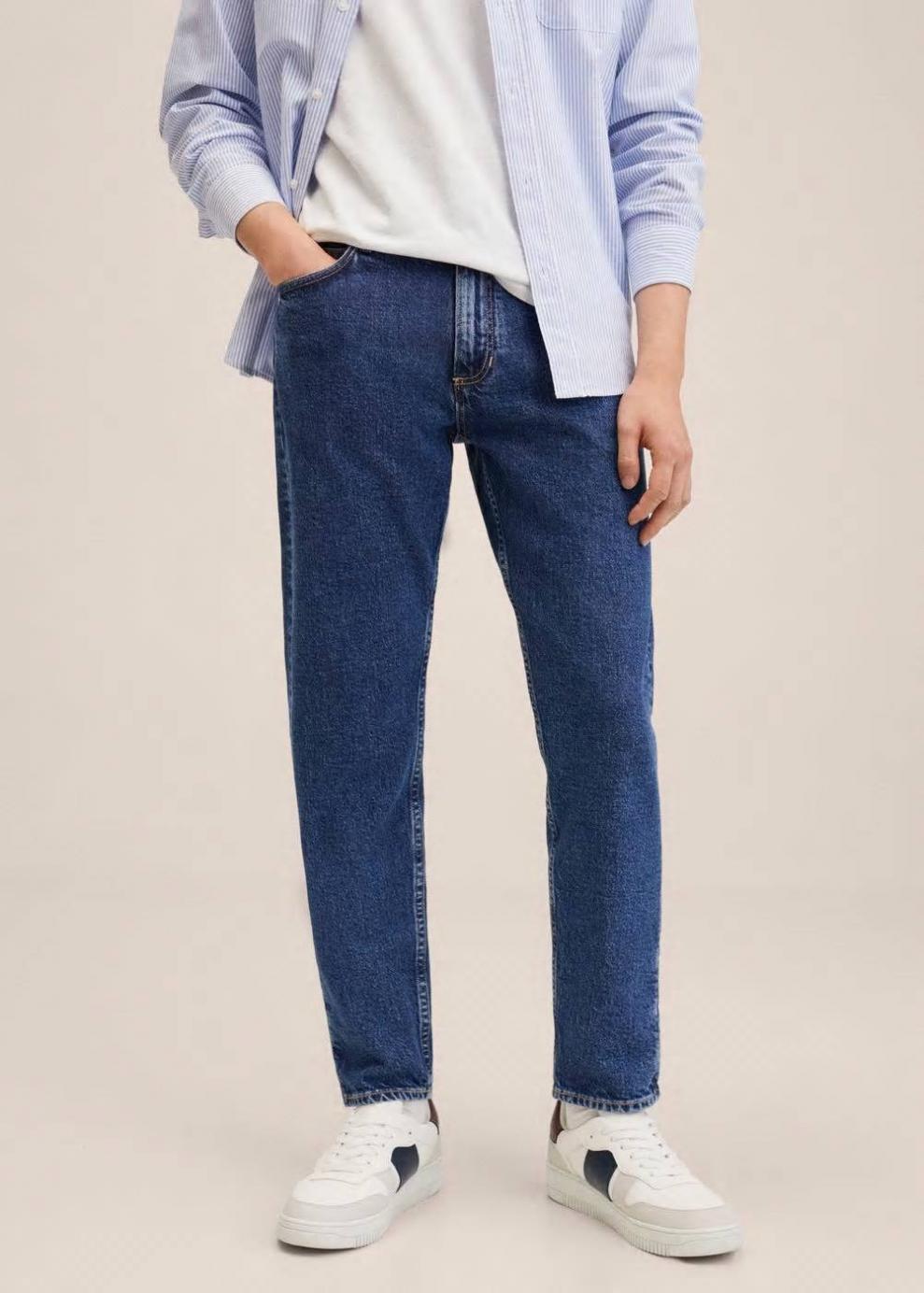 Regular fit Tapered fit: corte ancho en la parte superior que se va estrechando de la rodilla al tobillo Diseño crop Tejido mezcla de algodón sostenible Tejido de algodón estilo tejano vaquero Lavado vintage oscuro Trabillas Cierre de cremallera y botón Cinco bolsillos Colección Committed Estamos trabajando para reducir el impacto que tiene la producción de estas prendas en el planeta. Cosechar algodón de forma sostenible restringe el uso de productos químicos. También ayuda a ahorrar agua, energía y mantiene las tierras de cultivo limpias Mediante el uso de algodón sostenible y procesos innovadores como el Eco Wash, la colección denim de Mango ha conseguido reducir el uso de energía, químicos y agua, hasta un total de 30 millones de litros. Algunos modelos además incluyen un 20% de denim reciclado bajo el proyecto Second Chances, que da una segunda vida a ropa depositada por clientes en nuestras tiendas. Mango refuerza así el uso de prácticas más comprometidas con el medio ambiente, aumentando cada día el número de prendas sostenibles en su colección.