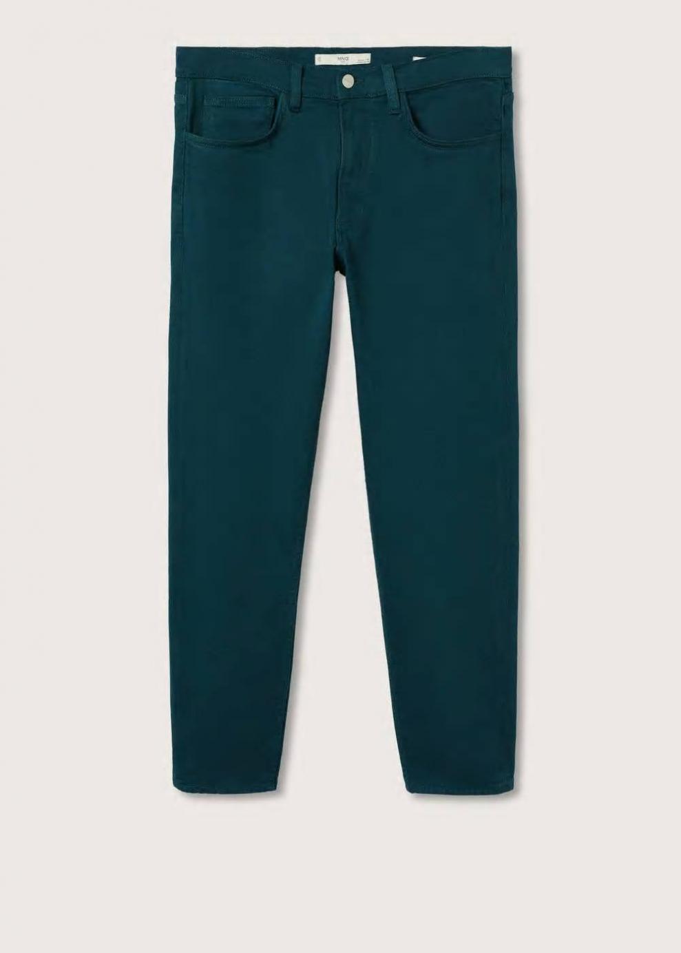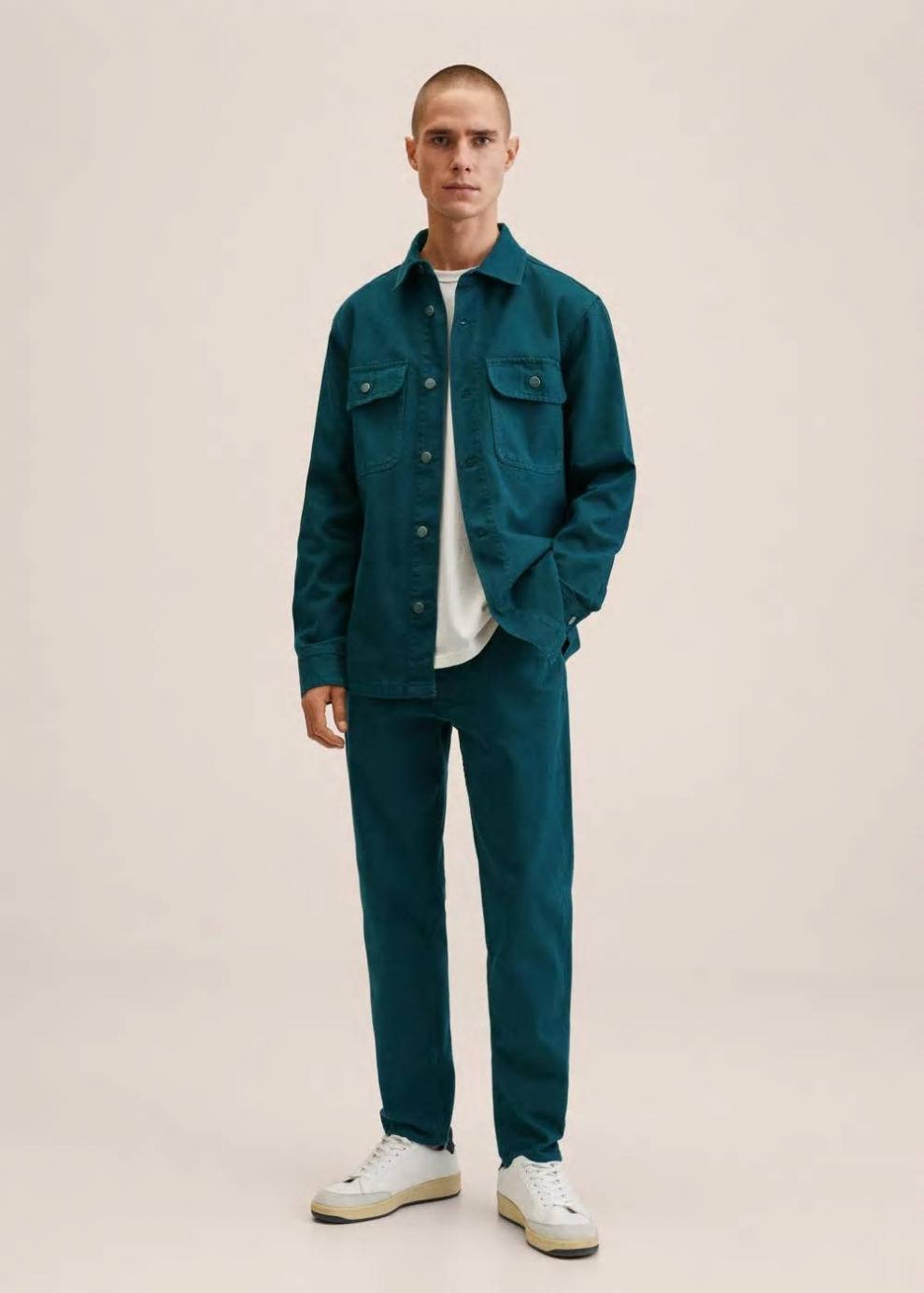 Tapered fit: corte ancho en la parte superior que se va estrechando de la rodilla al tobillo Diseño crop Tejido mezcla de algodón sostenible Tejido de algodón estilo tejano vaquero Cierre de cremallera Trabillas Cierre de cremallera y botón Cinco bolsillos El modelo mide 183 cm y lleva una talla 42 Las prendas etiquetadas como Committed son productos que han sido confeccionadas con fibras y/o procesos de producción sostenible, reduciendo así su impacto ambiental. El objetivo de Mango es respaldar la implementación de prácticas más comprometidas con el medio ambiente, aumentando así, el número de prendas sostenibles en su colección.