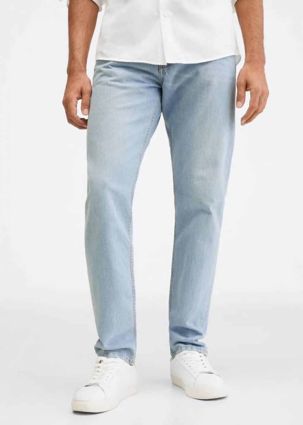 Straight-fit Tejido de algodón sostenible Tejido de algodón estilo tejano vaquero Lavado claro Trabillas Dos bolsillos laterales Bolsillo portamonedas Dos bolsillos de parche en la parte posterior Cierre de cremallera y botón El modelo mide 183 cm y lleva una talla 42 La colección denim de Mango Man apoya el crecimiento del algodón sostenible. También un 40%de la colección se produce bajo la acreditación ECO-WASH, un método de bajo consumo de energía, agua y recursos comparado a la forma tradicional. Las prendas etiquetadas como Committed son productos que han sido confeccionadas con fibras y/o procesos de producción sostenible, reduciendo así su impacto ambiental. El objetivo de Mango es respaldar la implementación de prácticas más comprometidas con el medio ambiente, aumentando así, el número de prendas sostenibles en su colección.