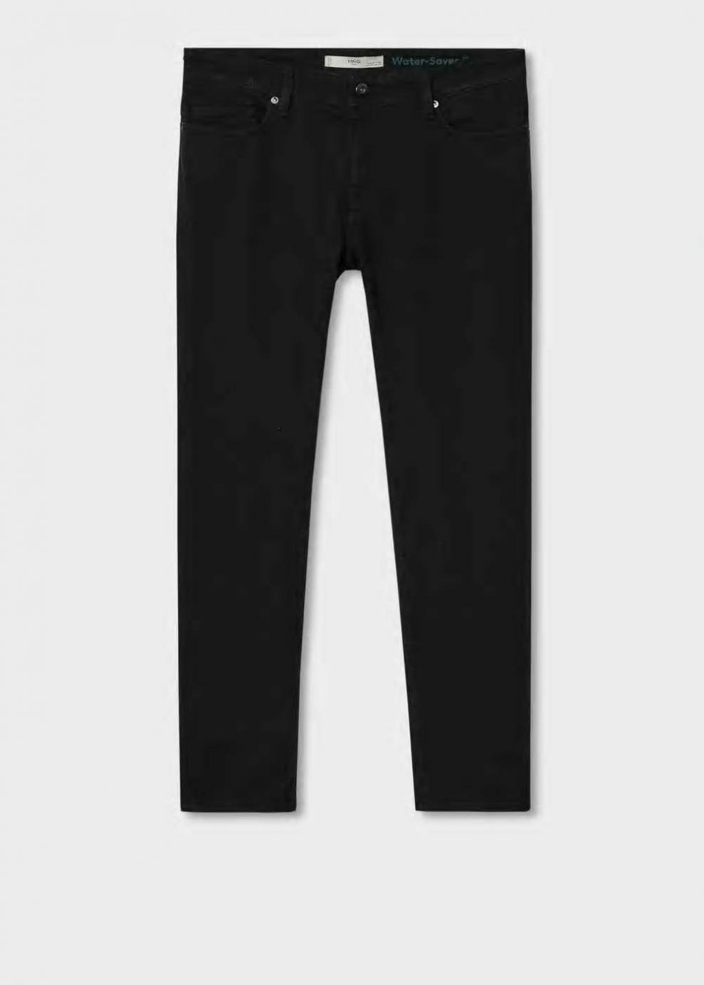 Slim fit Tejido mezcla de algodón sostenible Color negro Trabillas Dos bolsillos laterales Bolsillo portamonedas Dos bolsillos de parche en la parte posterior Cierre de cremallera y botón Este pantalón dispone de tallas con un largo extra de 5 cm que ayudan a mantener el fit original sea cual sea tu altura El modelo mide 187 cm y lleva una talla 42 La colección denim de Mango Man apoya el crecimiento del algodón sostenible. También un 40%de la colección se produce bajo la acreditación ECO-WASH, un método de bajo consumo de energía, agua y recursos comparado a la forma tradicional. Las prendas etiquetadas como Committed son productos que han sido confeccionadas con fibras y/o procesos de producción sostenible, reduciendo así su impacto ambiental. El objetivo de Mango es respaldar la implementación de prácticas más comprometidas con el medio ambiente, aumentando así, el número de prendas sostenibles en su colección.