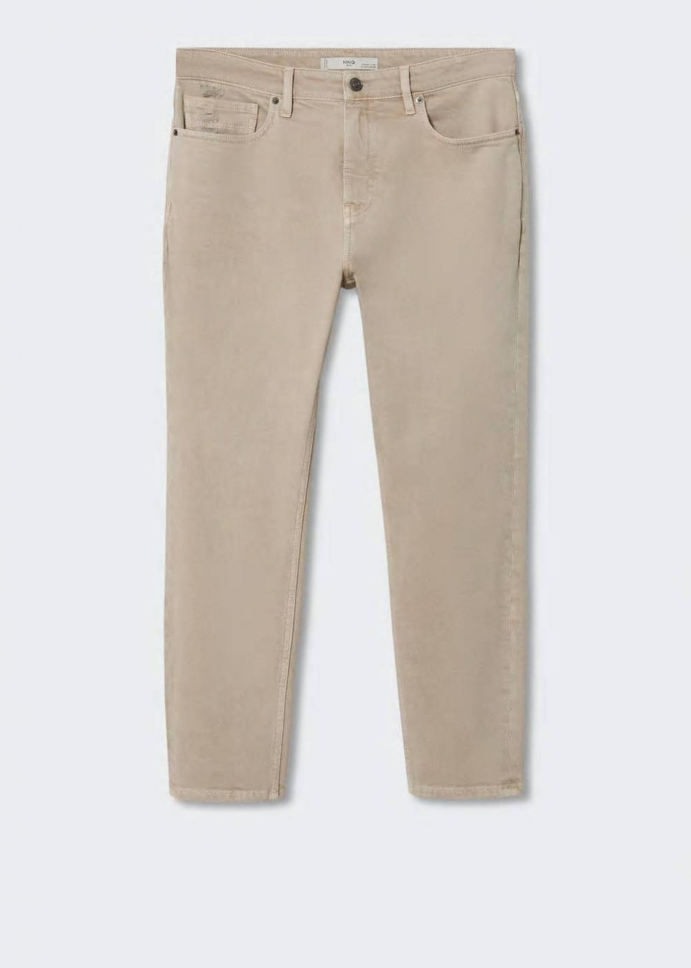 Tapered fit: corte ancho en la parte superior que se va estrechando de la rodilla al tobillo Tejido de algodón estilo tejano vaquero Trabillas Lavado oscuro Cierre de cremallera y botón Cinco bolsillos El modelo mide 183 cm y lleva una talla 42 La colección denim de Mango Man apoya el crecimiento del algodón sostenible. También un 40%de la colección se produce bajo la acreditación ECO-WASH, un método de bajo consumo de energía, agua y recursos comparado a la forma tradicional. Las prendas etiquetadas como Committed son productos que han sido confeccionadas con fibras y/o procesos de producción sostenible, reduciendo así su impacto ambiental. El objetivo de Mango es respaldar la implementación de prácticas más comprometidas con el medio ambiente, aumentando así, el número de prendas sostenibles en su colección.