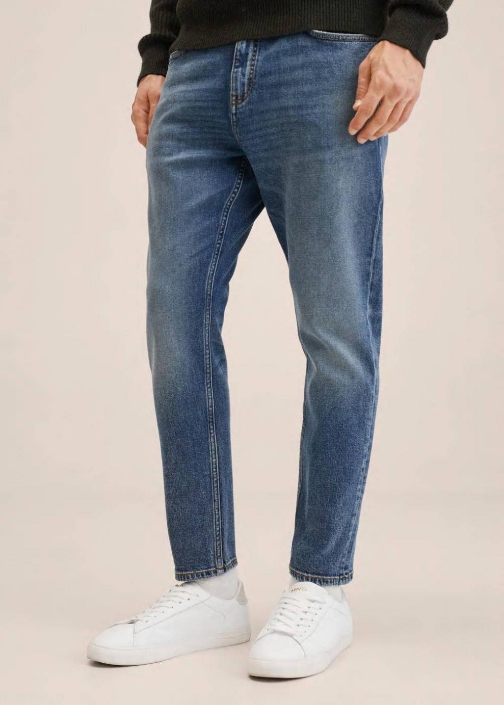 Diseño estándar Tapered fit: corte ancho en la parte superior que se va estrechando de la rodilla al tobillo Tejido de algodón estilo tejano vaquero Tejido con lyocell Tejido soft Diseño crop Lavado oscuro Trabillas Cierre de cremallera y botón Cinco bolsillos El modelo mide 187 cm y lleva una talla 42 Tejido de algodón sostenible La colección denim de Mango Man apoya el crecimiento del algodón sostenible. También un 40%de la colección se produce bajo la acreditación ECO-WASH, un método de bajo consumo de energía, agua y recursos comparado a la forma tradicional. Las prendas etiquetadas como Committed son productos que han sido confeccionadas con fibras y/o procesos de producción sostenible, reduciendo así su impacto ambiental. El objetivo de Mango es respaldar la implementación de prácticas más comprometidas con el medio ambiente, aumentando así, el número de prendas sostenibles en su colección.