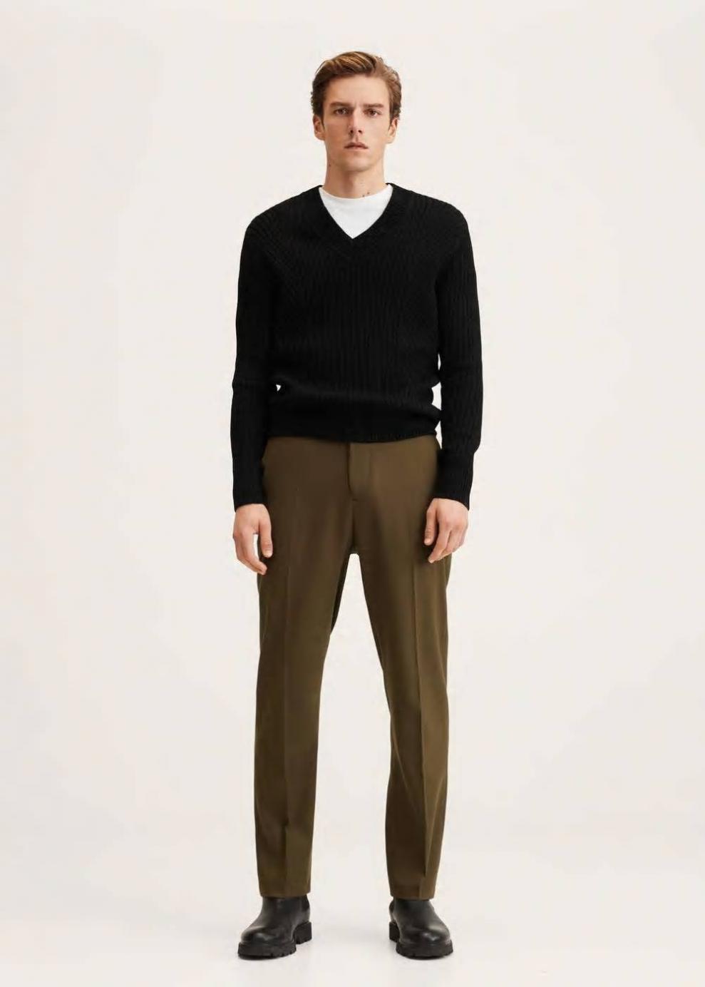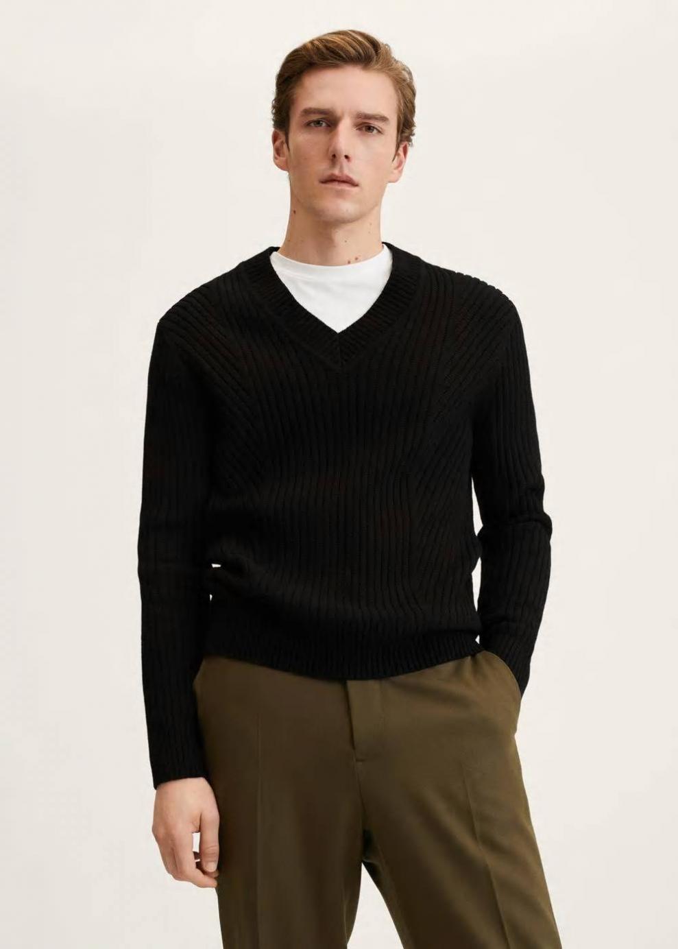 Exclusivo Online Diseño estándar Diseño recto Sin cierre Tejido de punto grueso Tejido con estructura Tejido con lana Cuello pico Manga larga Terminaciones elásticas en canalé El modelo mide 187 cm y lleva una talla M