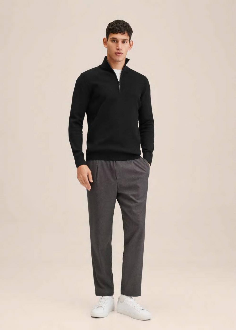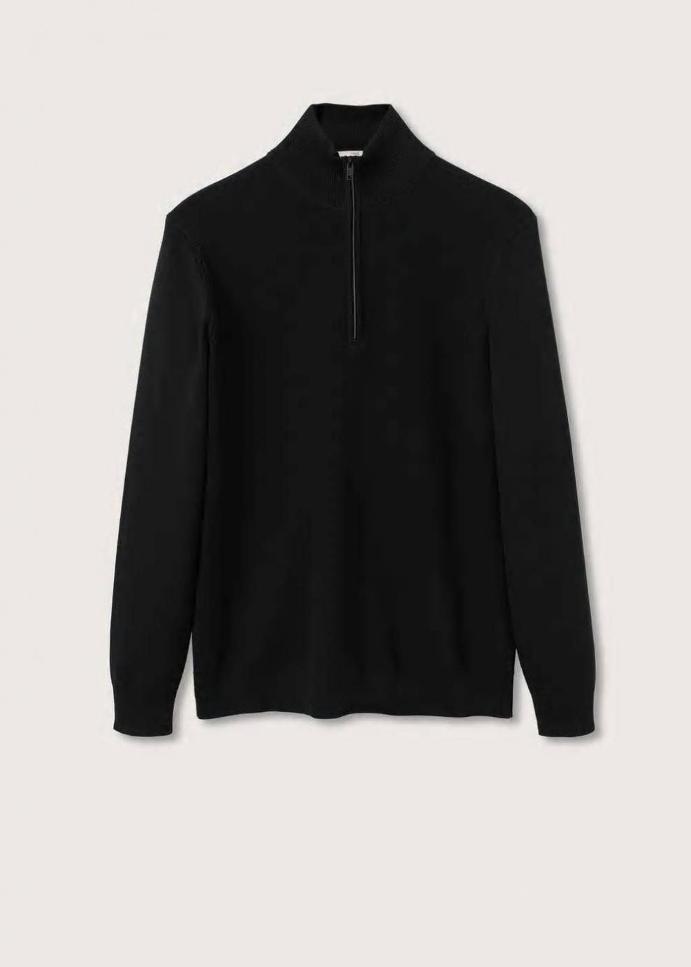 Tejido de punto fino Tejido con estructura Tejido stretch Quick Dry: tejido de secado rápido Wrinkle free: tejido antiarrugas Cuello alto con cierre de cremallera Manga larga Terminaciones elásticas en canalé El modelo mide 187 cm y lleva una talla M