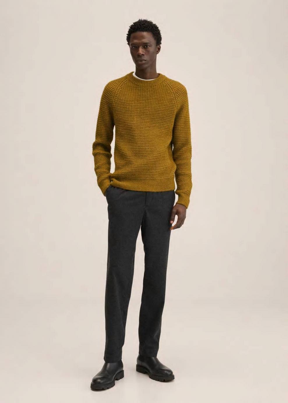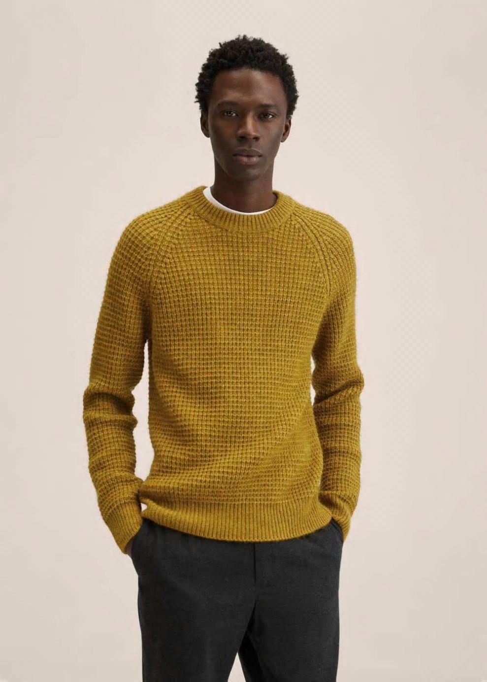 Tejido de punto grueso Tejido con lana Tejido mezcla de alpaca Tejido con estructura Cuello redondo Manga larga Terminaciones en canalé El modelo mide 190 cm y lleva una talla M