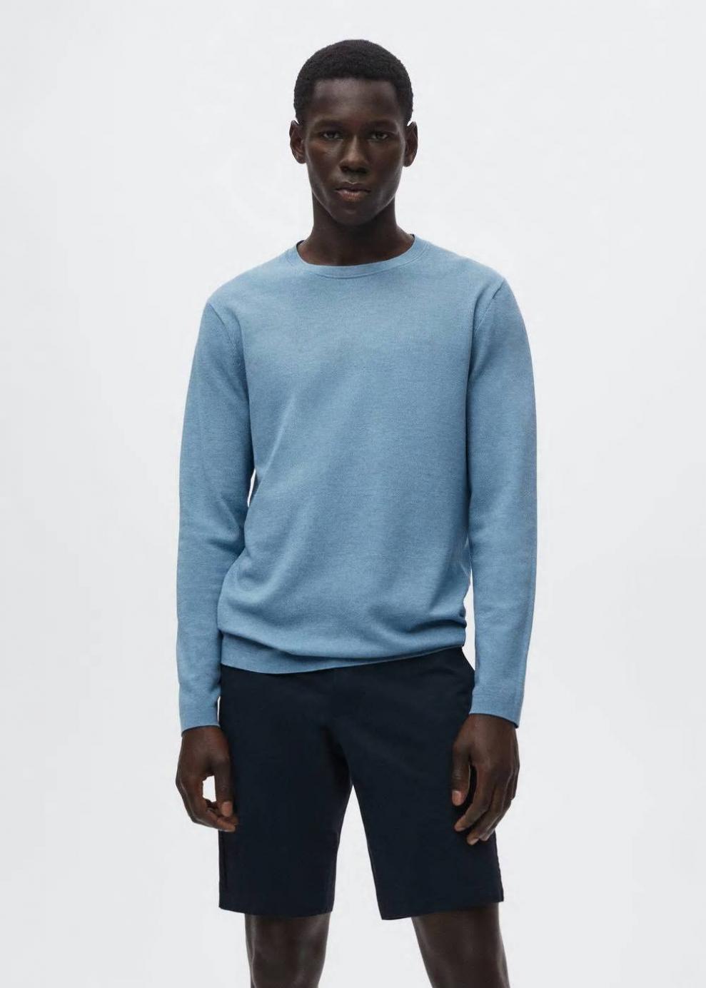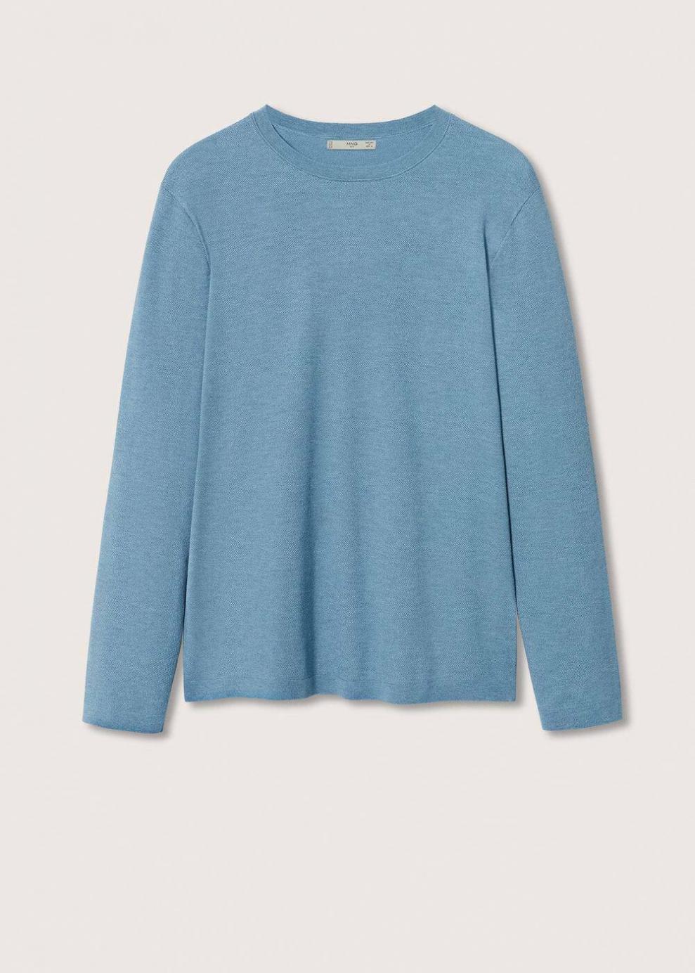 Tejido de punto fino Tejido de algodón sostenible Tejido fluido Cuello redondo Manga larga Las prendas etiquetadas como Committed son productos que han sido confeccionadas con fibras y/o procesos de producción sostenible, reduciendo así su impacto ambiental. El objetivo de Mango es respaldar la implementación de prácticas más comprometidas con el medio ambiente, aumentando así, el número de prendas sostenibles en su colección.