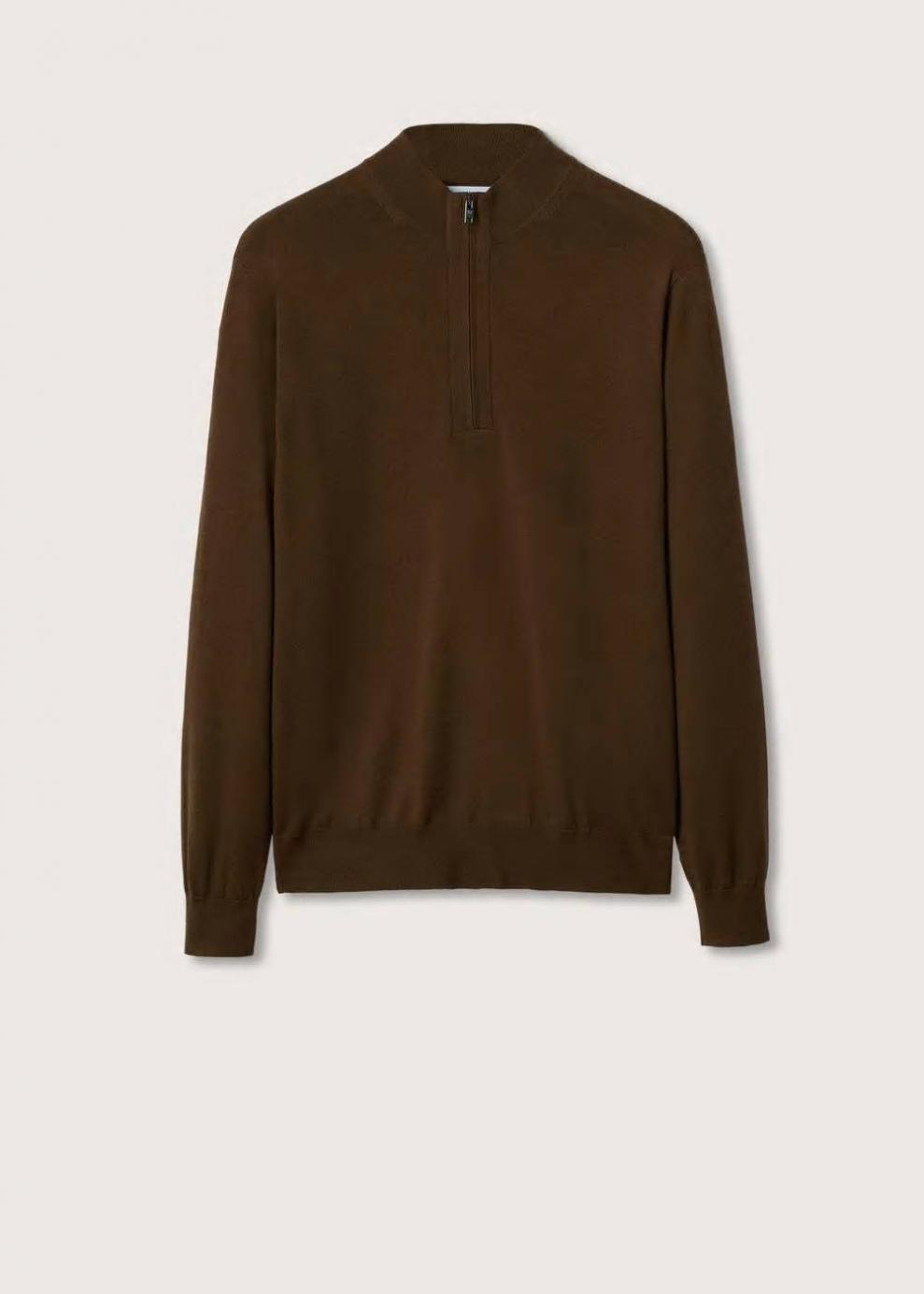 Diseño estándar Cierre delantero Cuello perkins Slim fit 100% lana Tejido de punto fino Cuello perkins con cremallera Manga larga Terminaciones elásticas en canalé