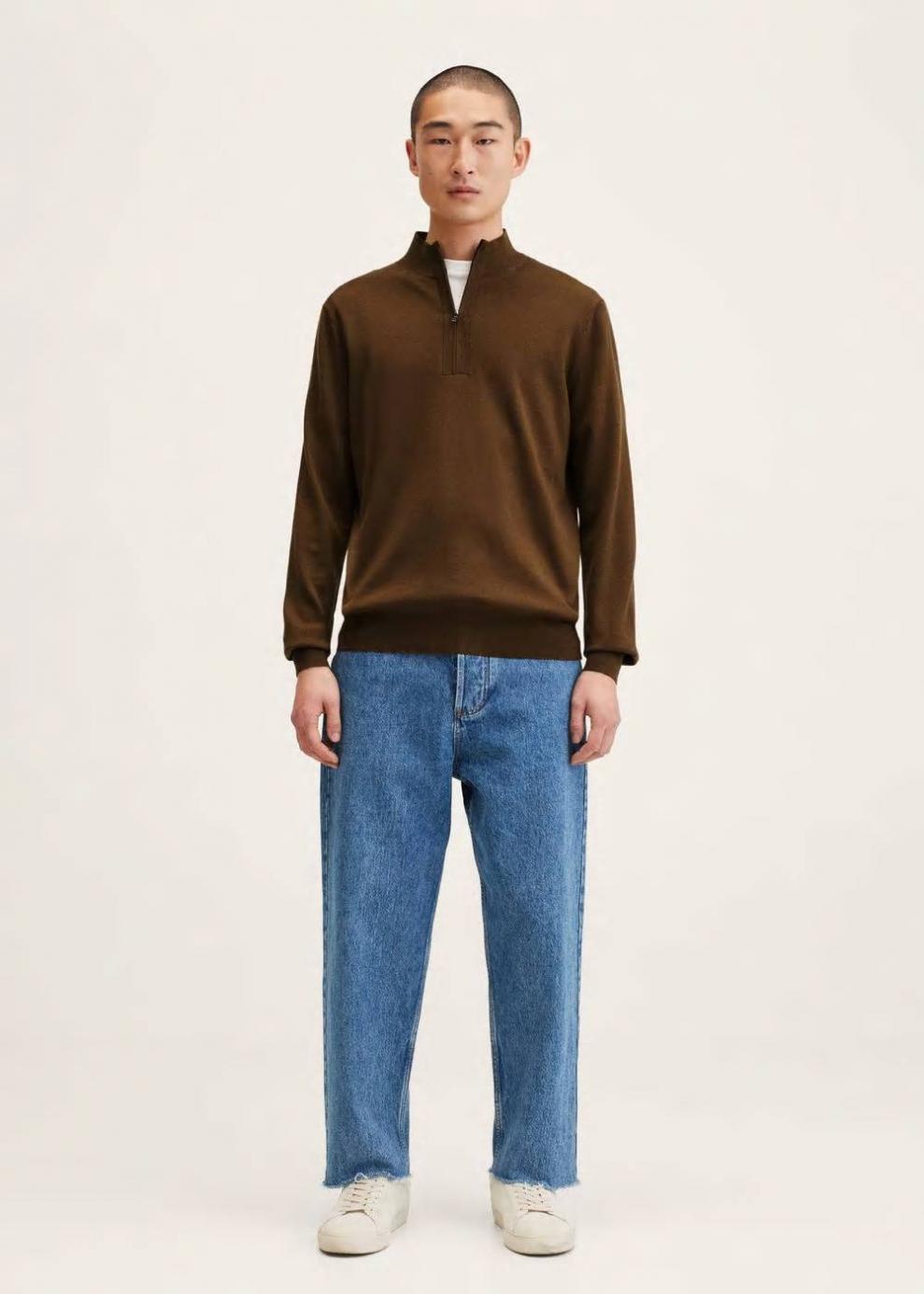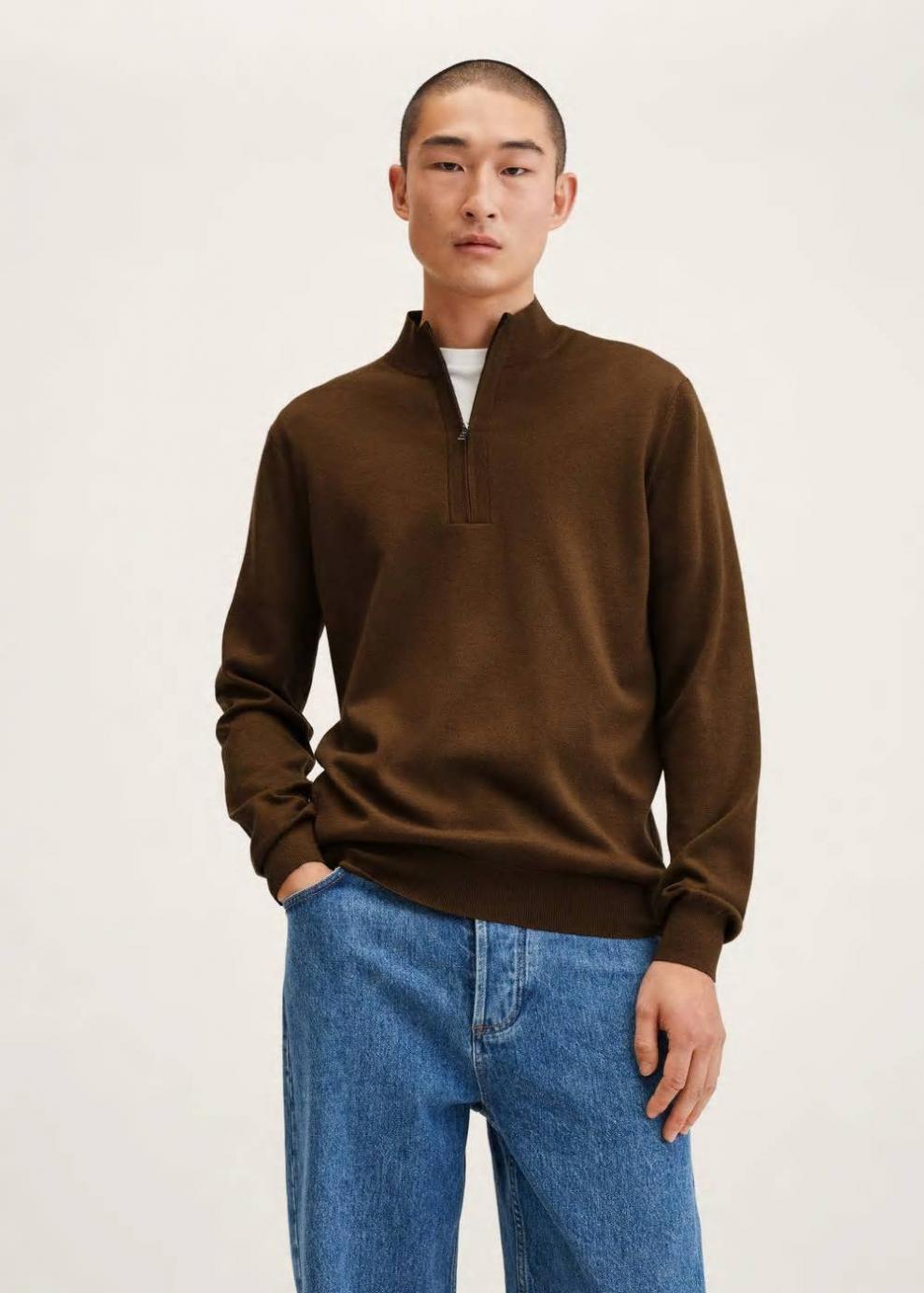 Diseño estándar Cierre delantero Cuello perkins Slim fit 100% lana Tejido de punto fino Cuello perkins con cremallera Manga larga Terminaciones elásticas en canalé…