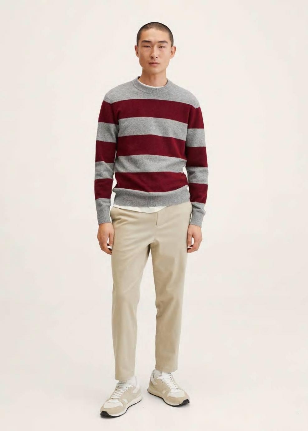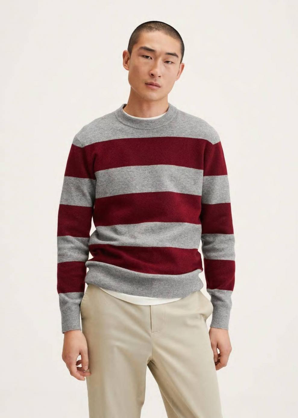 Exclusivo Online Diseño de rayas Tejido con lana Tejido de punto fino Cuello redondo Manga larga Terminaciones elásticas en canalé El modelo mide 183 cm y lleva una talla M