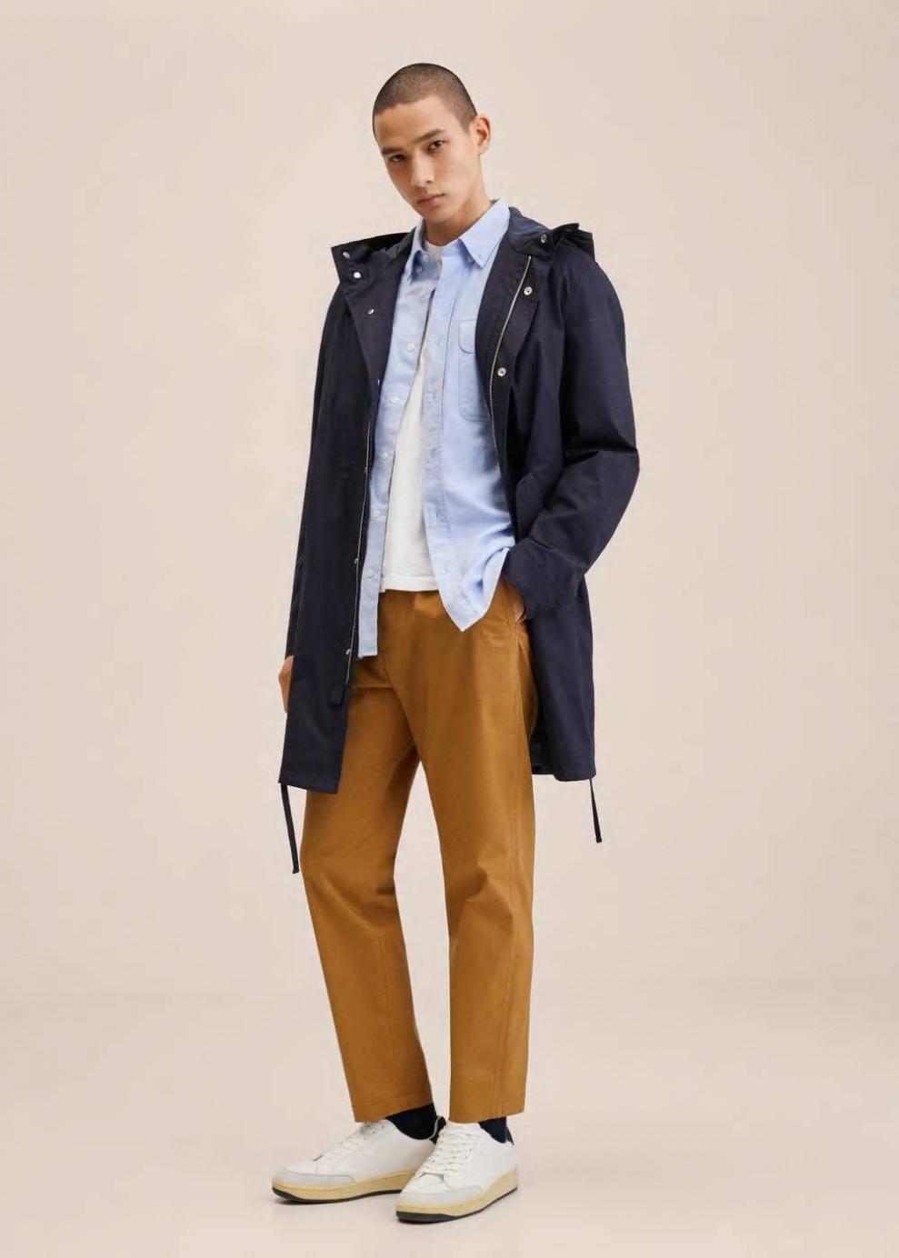 Slim fit Tejido mezcla de algodón sostenible Cintura elástica con cordón ajustable Cierre de cremallera y botón Dos bolsillos laterales El modelo mide 185 cm y lleva una talla 42 Las prendas etiquetadas como Committed son productos que han sido confeccionadas con fibras y/o procesos de producción sostenible, reduciendo así su impacto ambiental. El objetivo de Mango es respaldar la implementación de prácticas más comprometidas con el medio ambiente, aumentando así, el número de prendas sostenibles en su colección.