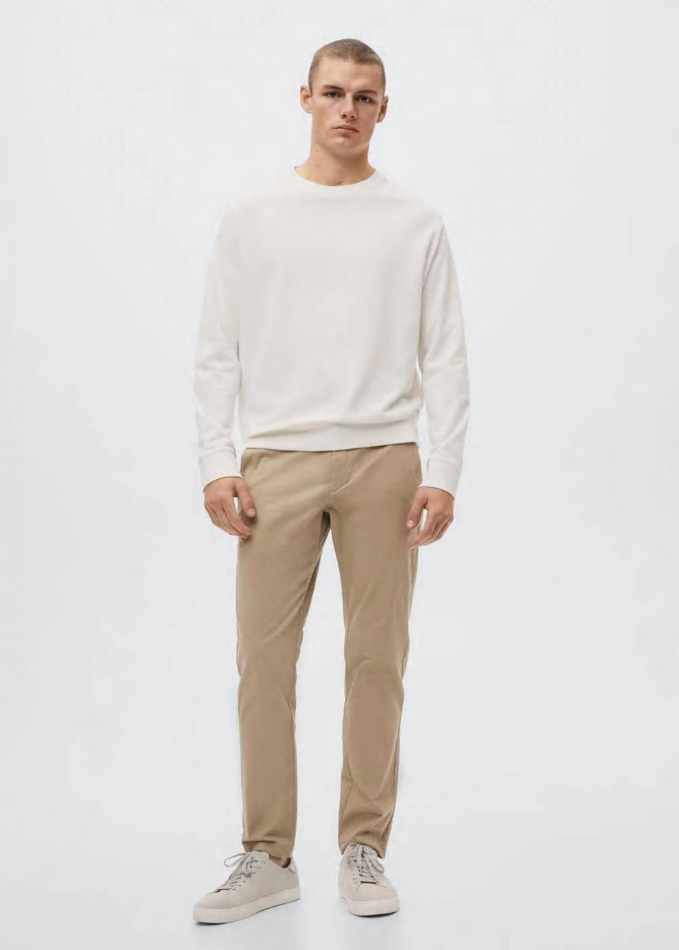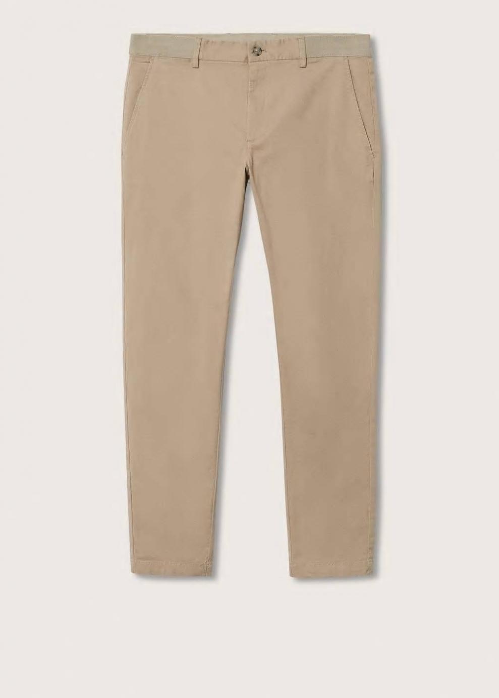 Tapered fit: corte ancho en la parte superior que se va estrechando de la rodilla al tobillo Tejido mezcla de algodón sostenible Trabillas Cintura elástica Dos bolsillos laterales Dos bolsillos de solapa con botón en la parte posterior Cierre de cremallera y botón El modelo mide 183 cm y lleva una talla 42 Las prendas etiquetadas como Committed son productos que han sido confeccionadas con fibras y/o procesos de producción sostenible, reduciendo así su impacto ambiental. El objetivo de Mango es respaldar la implementación de prácticas más comprometidas con el medio ambiente, aumentando así, el número de prendas sostenibles en su colección.