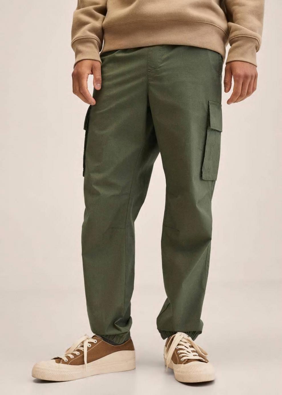 Diseño cargo Tejido mezcla de algodón sostenible Cintura elástica con cordón Dos bolsillos laterales Dos bolsillos cargo Bajo elástico El modelo mide 183 cm y lleva una talla 42 Las prendas etiquetadas como Committed son productos que han sido confeccionadas con fibras y/o procesos de producción sostenible, reduciendo así su impacto ambiental. El objetivo de Mango es respaldar la implementación de prácticas más comprometidas con el medio ambiente, aumentando así, el número de prendas sostenibles en su colección.