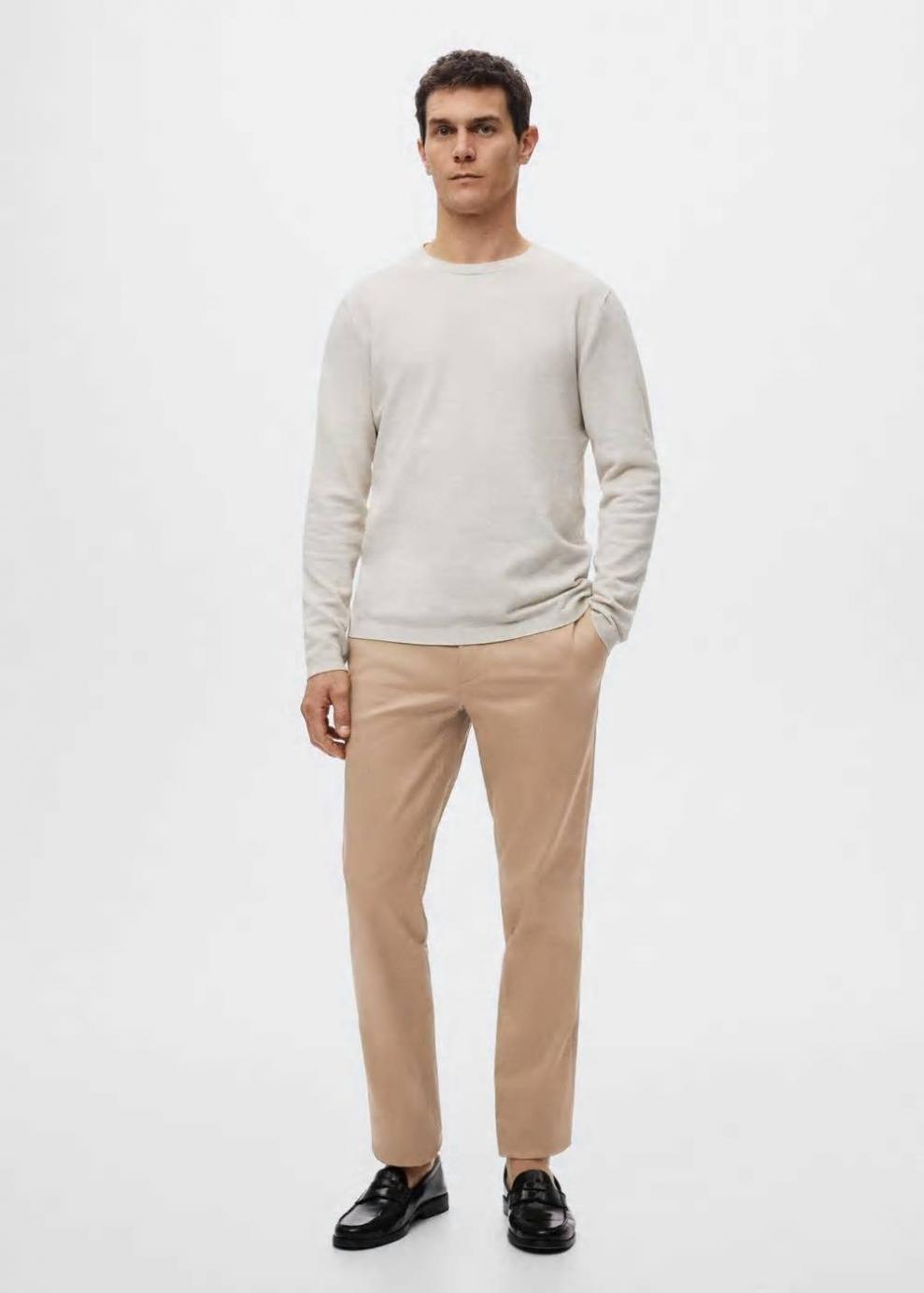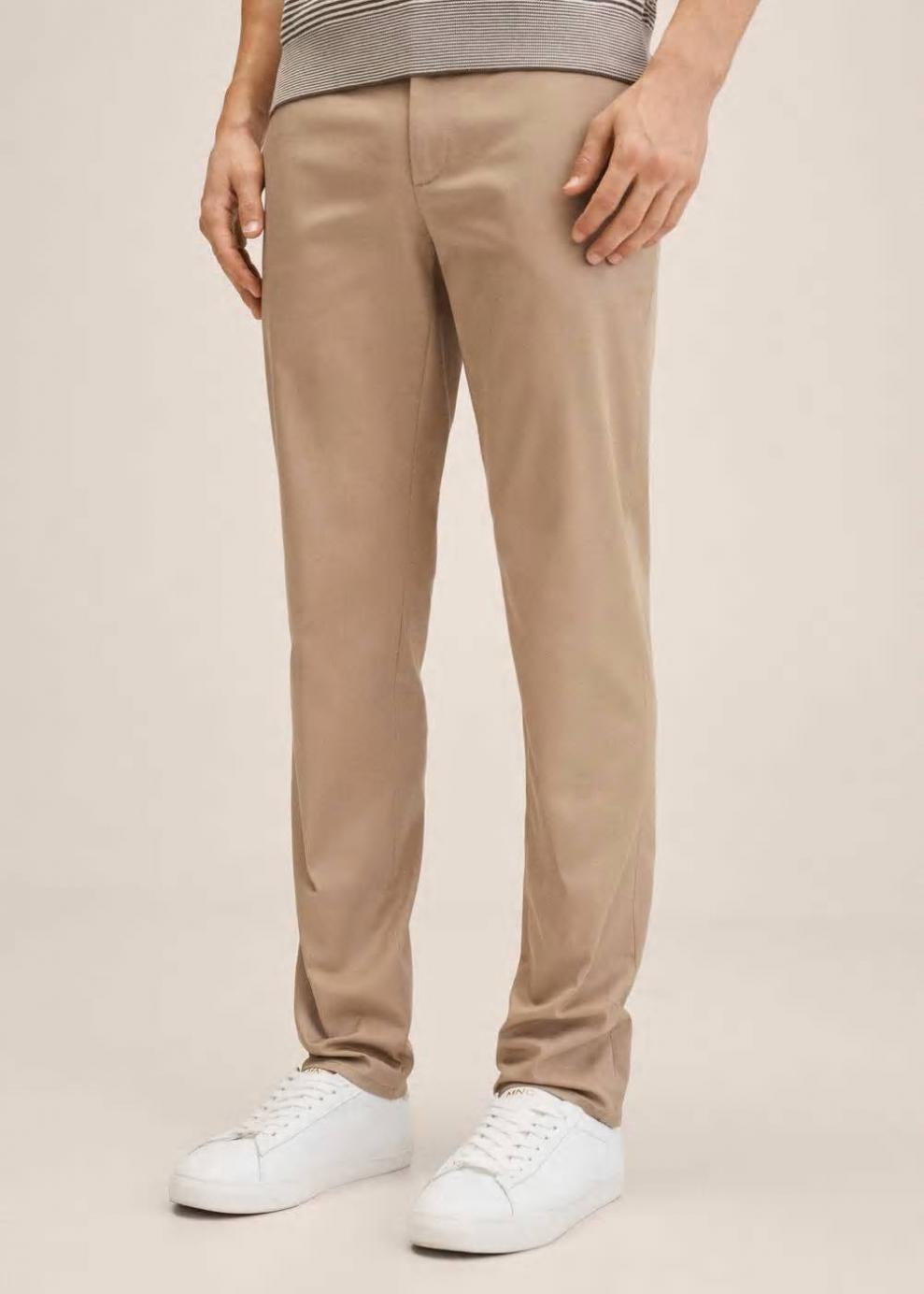 Slim fit Tejido mezcla de algodón sostenible Tejido de sarga Estilo chinos Trabillas Cierre de cremallera y botones Dos bolsillos laterales Dos bolsillos de ribete en la parte posterior Este pantalón dispone de tallas con un largo extra de 5 cm que ayudan a mantener el fit original sea cual sea tu altura Las prendas etiquetadas como Committed son productos que han sido confeccionadas con fibras y/o procesos de producción sostenible, reduciendo así su impacto ambiental. El objetivo de Mango es respaldar la implementación de prácticas más comprometidas con el medio ambiente, aumentando así, el número de prendas sostenibles en su colección.