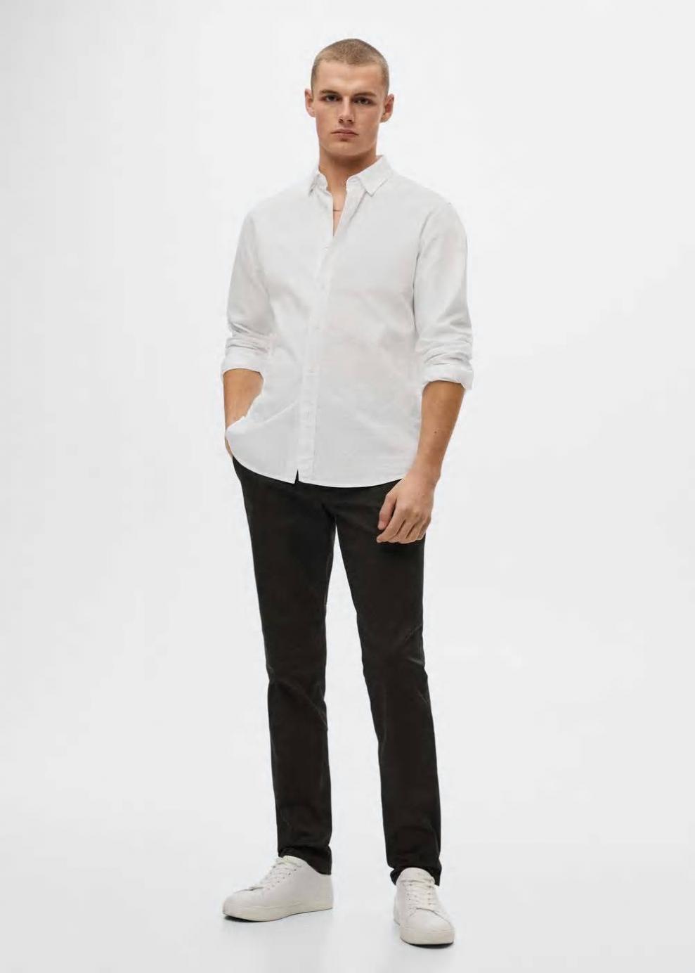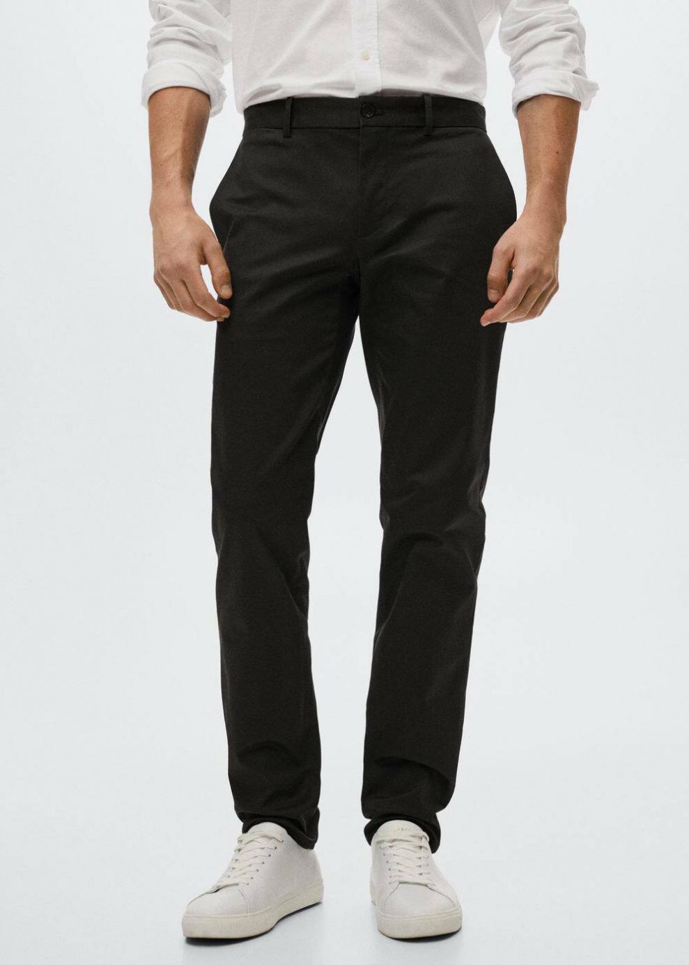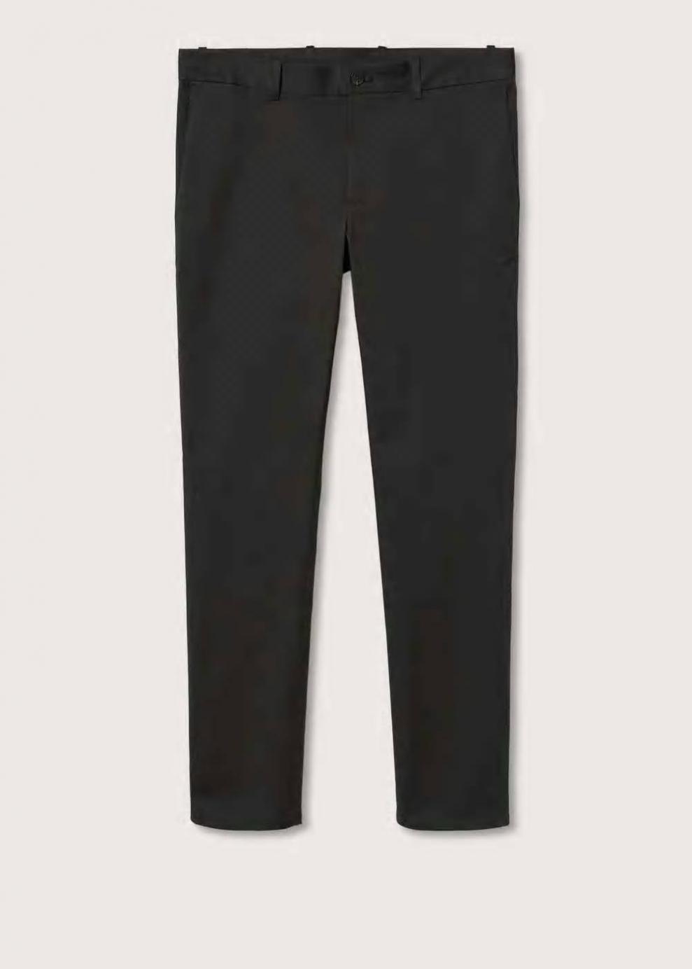 Slim fit Tejido mezcla de algodón sostenible Tejido de sarga Estilo chinos Trabillas Cierre de cremallera y botones Dos bolsillos laterales Dos bolsillos de ribete en la parte posterior Este pantalón dispone de tallas con un largo extra de 5 cm que ayudan a mantener el fit original sea cual sea tu altura El modelo mide 183 cm y lleva una talla 42 Las prendas etiquetadas como Committed son productos que han sido confeccionadas con fibras y/o procesos de producción sostenible, reduciendo así su impacto ambiental. El objetivo de Mango es respaldar la implementación de prácticas más comprometidas con el medio ambiente, aumentando así, el número de prendas sostenibles en su colección.