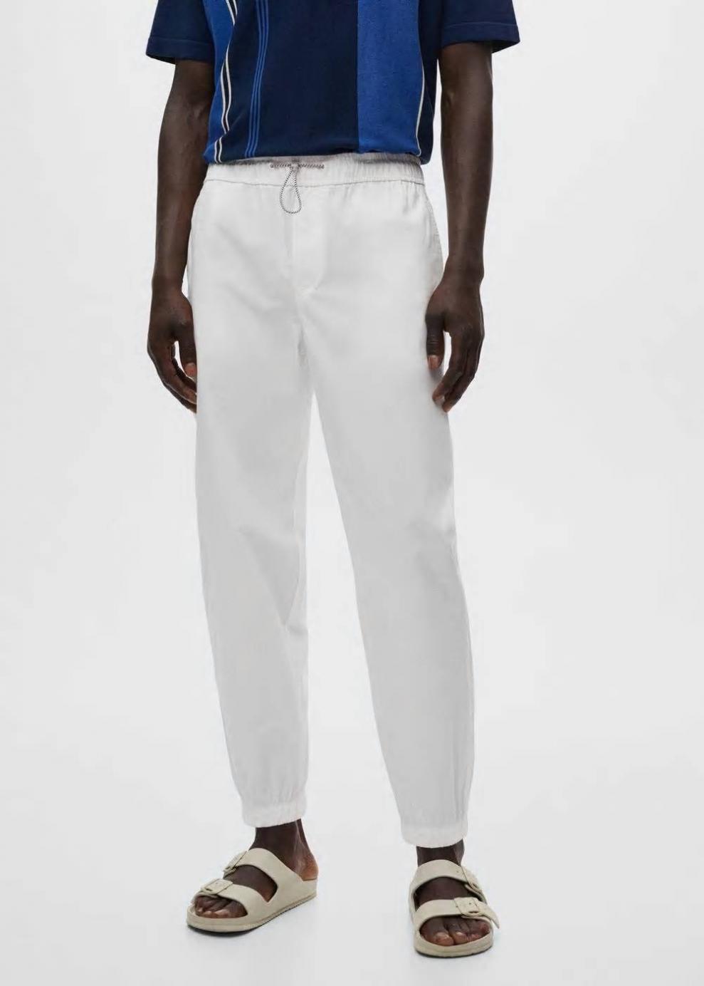 Hombre Pantalón jogger algodón Blanco Roto | Pantalones Mango