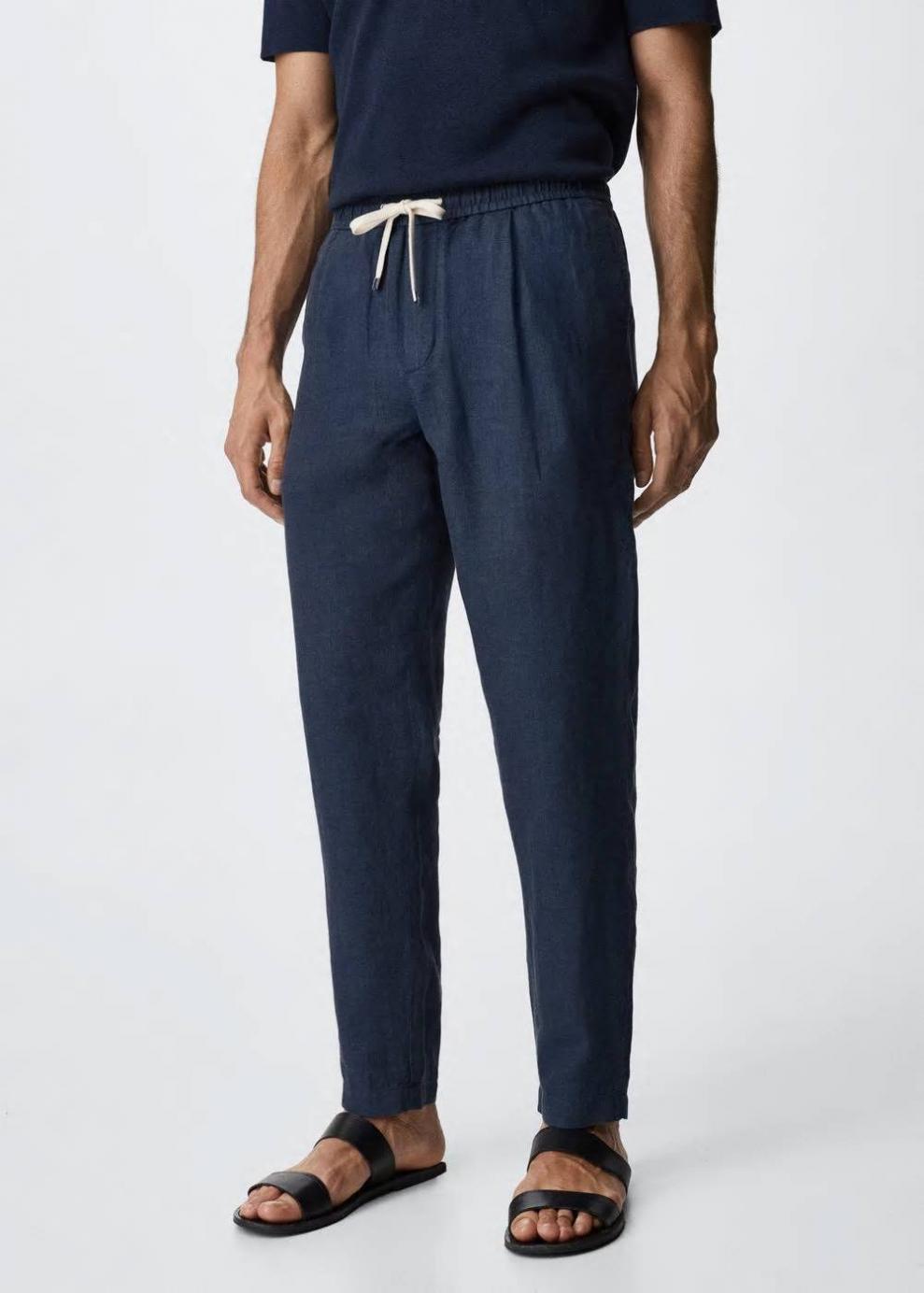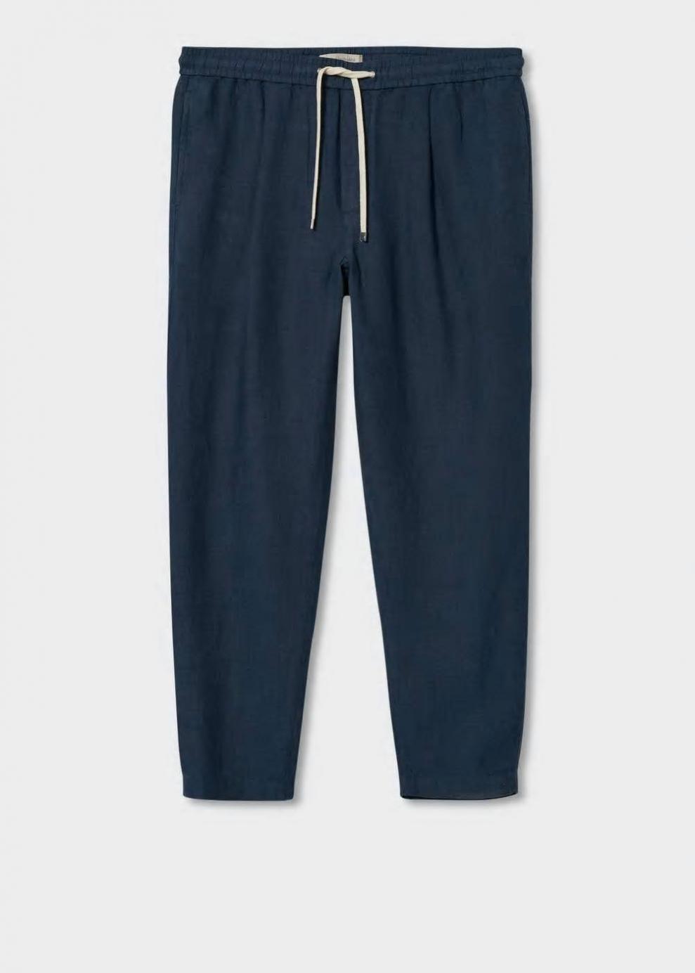 Hombre Pantalón jogger lino pinzas Azul | Pantalones Mango