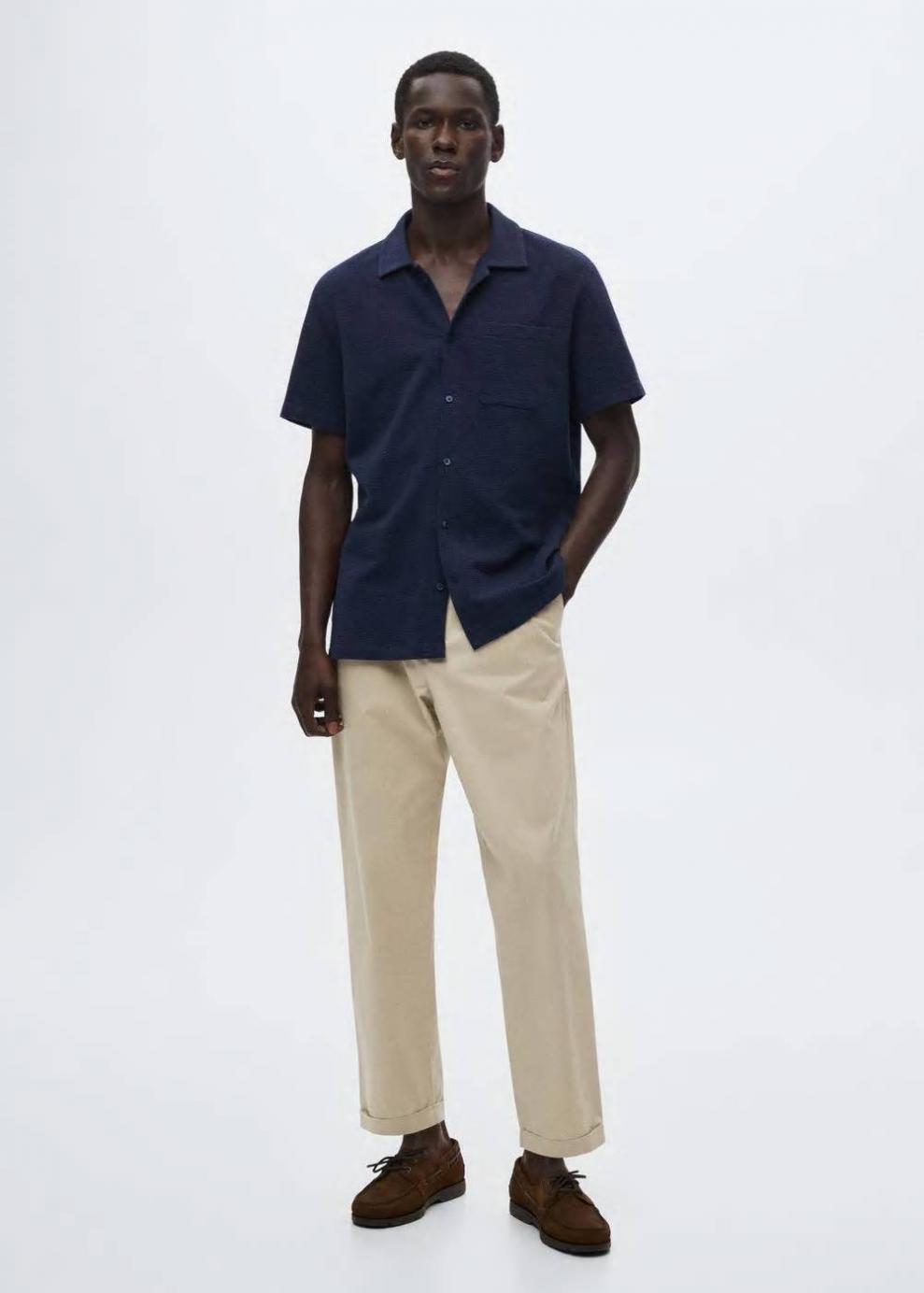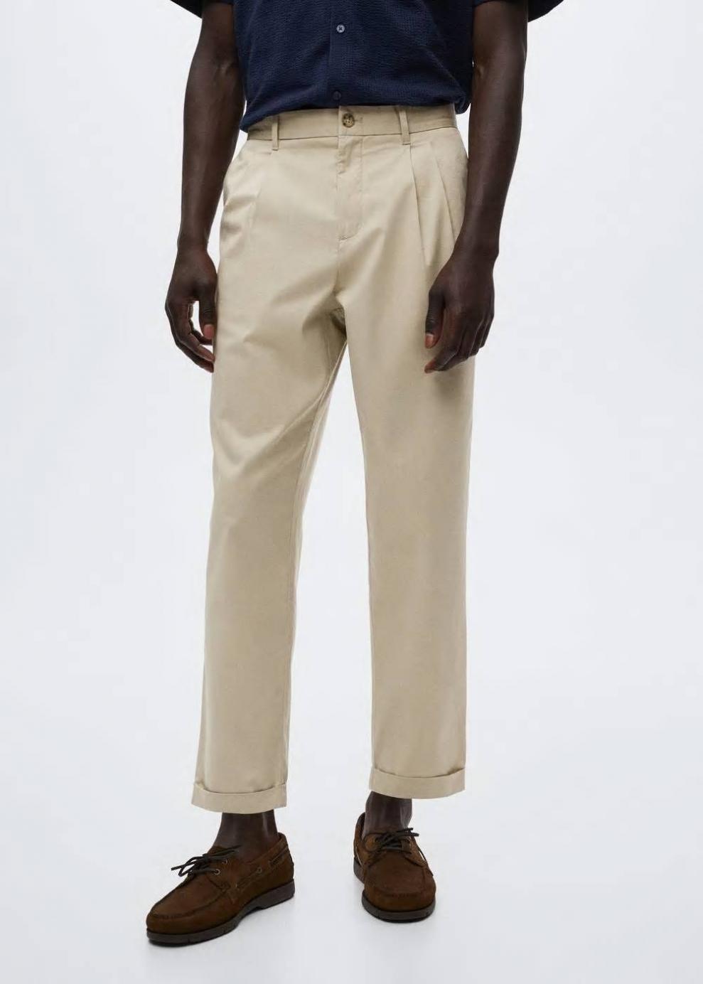 Diseño recto Pinzas en la parte delantera Tejido mezcla de algodón Trabillas Dos bolsillos laterales Dos bolsillos de ribete en la parte posterior Cierre de cremallera y botón El modelo mide 187 cm y lleva una talla 42 Las prendas etiquetadas como Committed son productos que han sido confeccionadas con fibras y/o procesos de producción sostenible, reduciendo así su impacto ambiental. El objetivo de Mango es respaldar la implementación de prácticas más comprometidas con el medio ambiente, aumentando así, el número de prendas sostenibles en su colección.