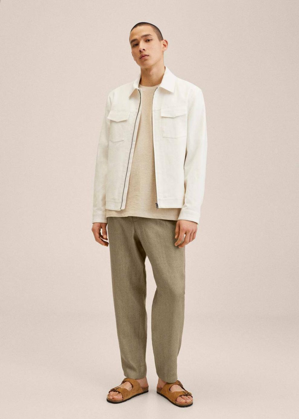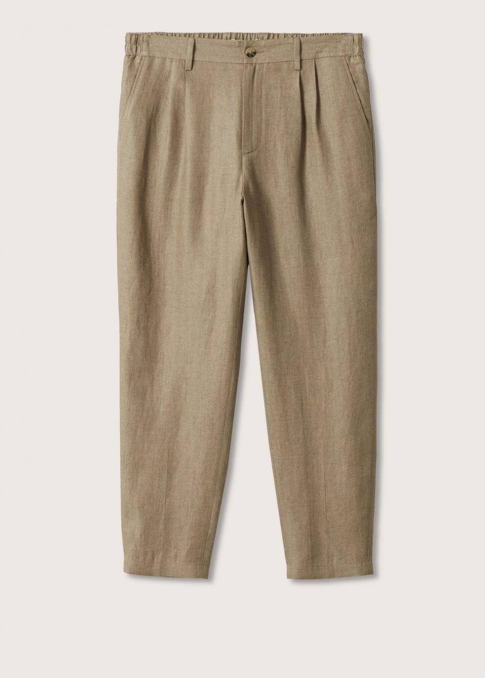 Regular fit 100% Lino Cintura elástica en la parte trasera Trabillas Dos bolsillos laterales Dos bolsillos de ribete en la parte posterior Cierre de cremallera y botón El modelo mide 185 cm y lleva una talla 42 Las prendas etiquetadas como Committed son productos que han sido confeccionadas con fibras y/o procesos de producción sostenible, reduciendo así su impacto ambiental. El objetivo de Mango es respaldar la implementación de prácticas más comprometidas con el medio ambiente, aumentando así, el número de prendas sostenibles en su colección.