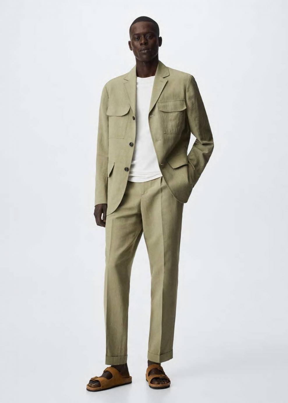 Regular fit Tejido mezcla de lino Tejido fluido Trabillas Pinzas en la parte delantera Dos bolsillos laterales Dos bolsillos de solapa en la parte posterior Bajo con vuelta Cierre de cremallera y botón El modelo mide 187 cm y lleva una talla M Las prendas etiquetadas como Committed son productos que han sido confeccionadas con fibras y/o procesos de producción sostenible, reduciendo así su impacto ambiental. El objetivo de Mango es respaldar la implementación de prácticas más comprometidas con el medio ambiente, aumentando así, el número de prendas sostenibles en su colección.