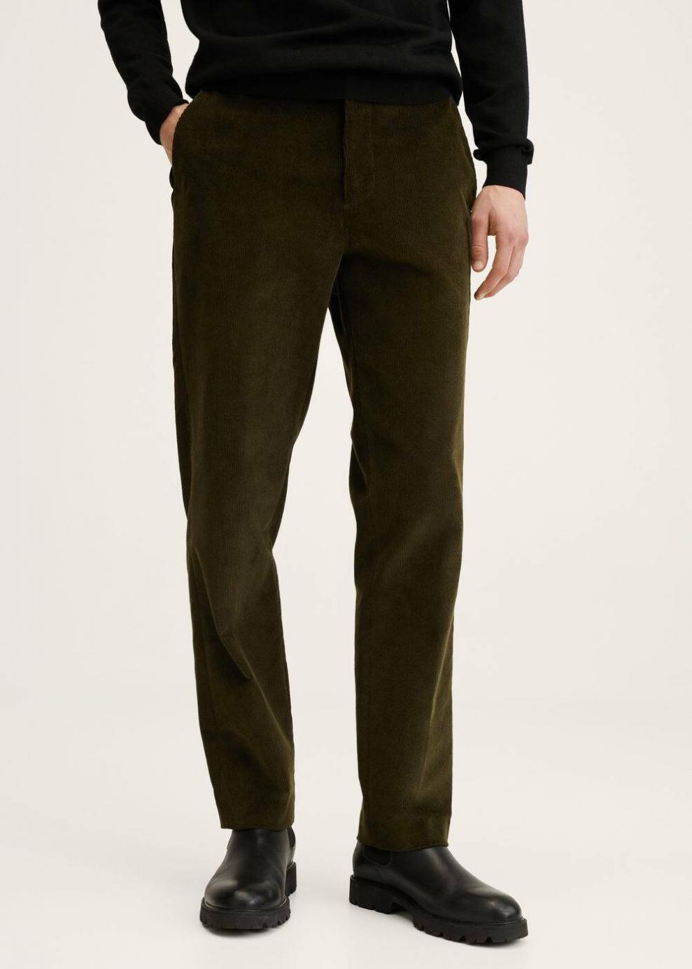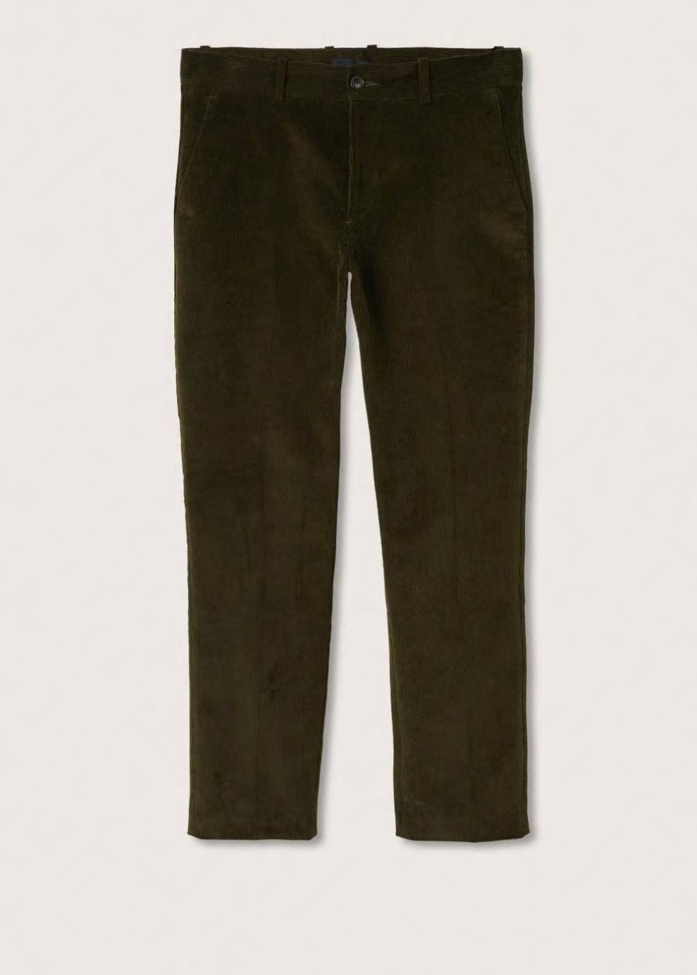 Regular fit Tejido mezcla de algodón sostenible Tejido de pana Trabillas Dos bolsillos laterales Dos bolsillos de ribete en la parte posterior Cierre de cremallera y botón El modelo mide 187 cm y lleva una talla 40 Las prendas etiquetadas como Committed son productos que han sido confeccionadas con fibras y/o procesos de producción sostenible, reduciendo así su impacto ambiental. El objetivo de Mango es respaldar la implementación de prácticas más comprometidas con el medio ambiente, aumentando así, el número de prendas sostenibles en su colección.