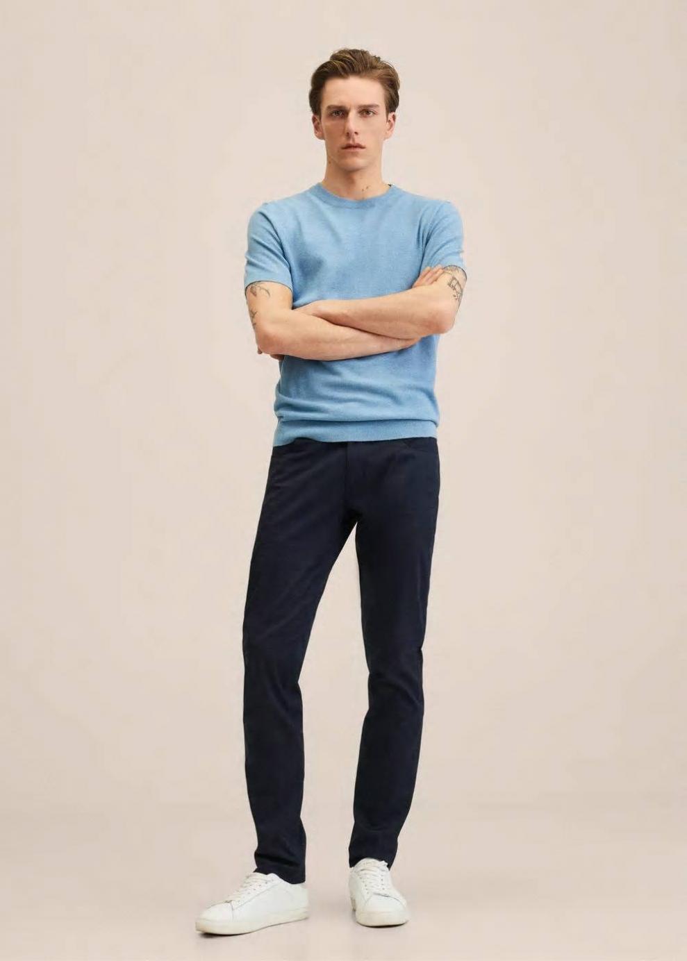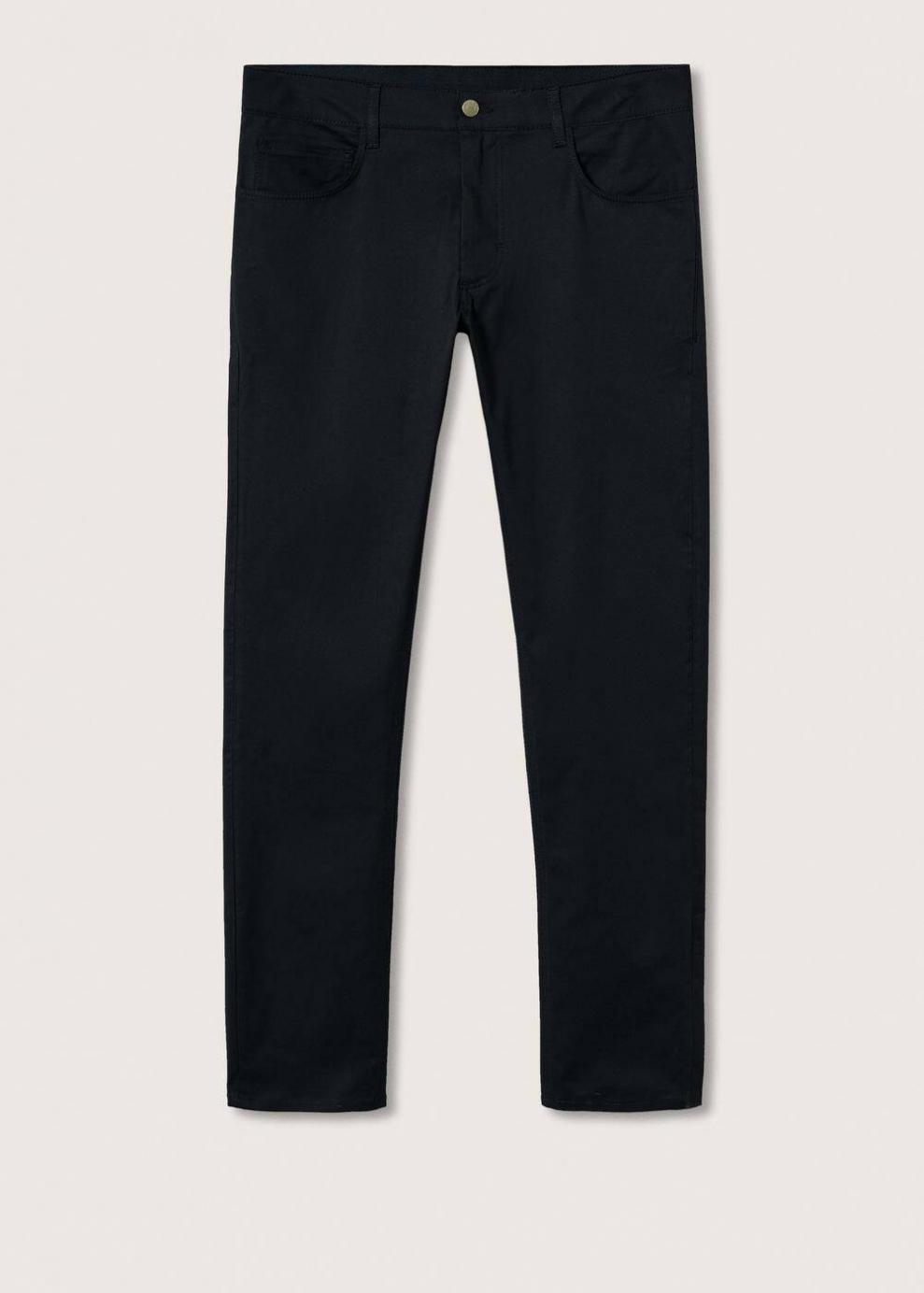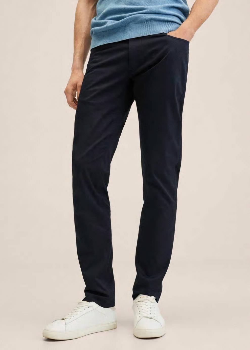 Corte skinny Tejido de algodón stretch Trabillas Dos bolsillos laterales Dos bolsillos de parche en la parte posterior Cierre de cremallera y botón El modelo mide 187 cm y lleva una talla 42