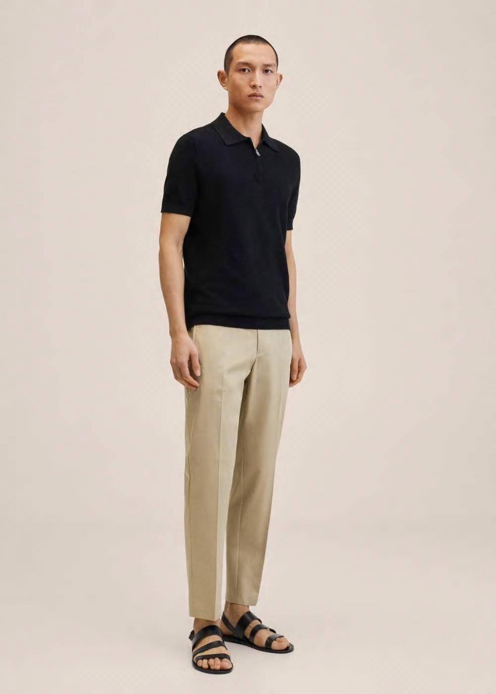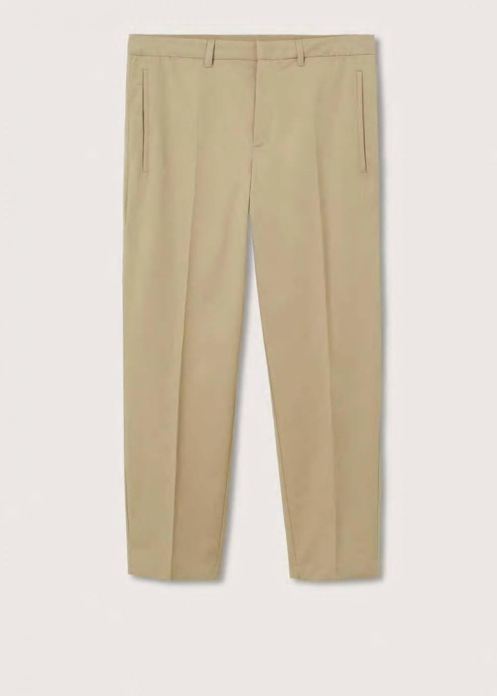 Slim fit Tejido de algodón sostenible Trabillas Cierre de cremallera y botón Dos bolsillos laterales Dos bolsillos de ribete con botón en la parte posterior El modelo mide 187 cm y lleva una talla 42 Las prendas etiquetadas como Committed son productos que han sido confeccionadas con fibras y/o procesos de producción sostenible, reduciendo así su impacto ambiental. El objetivo de Mango es respaldar la implementación de prácticas más comprometidas con el medio ambiente, aumentando así, el número de prendas sostenibles en su colección.