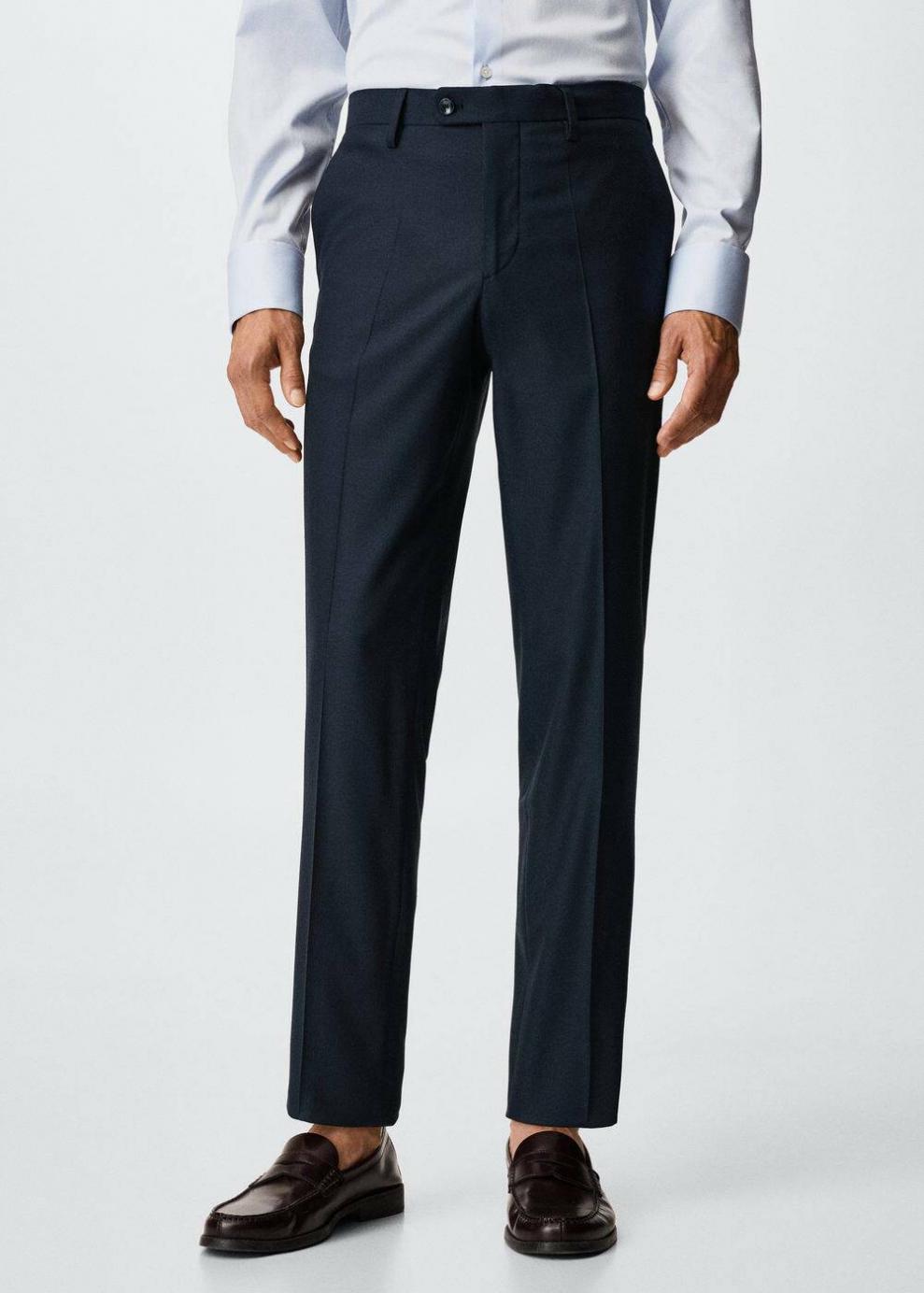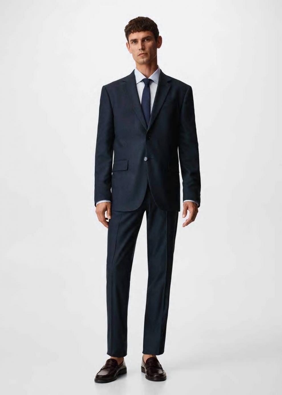 Línea Tailored Slim fit Trabillas Dos bolsillos laterales Bolsillo portamonedas Dos bolsillos de ribete en la parte posterior Cierre oculto de botón, gancho y cremallera El modelo mide 187 cm y lleva una talla 40 De corte ligeramente ceñido, el traje Slim Fit se estrecha un poco más al cuerpo respecto al Regular Fit. Ideal para aquellos que piden un plus al traje de corte clásico, sin llegar a marcar una silueta muy entallada. El traje Slim Fit viene en distintos modelos: cruzado, de lino, lana y el clásico, ahora fabricado en poliéster reciclado. Combínalo con jersey o camiseta si quieres darle un aire mas informal o con la clásica camisa y corbata para las ocasiones más especiales.