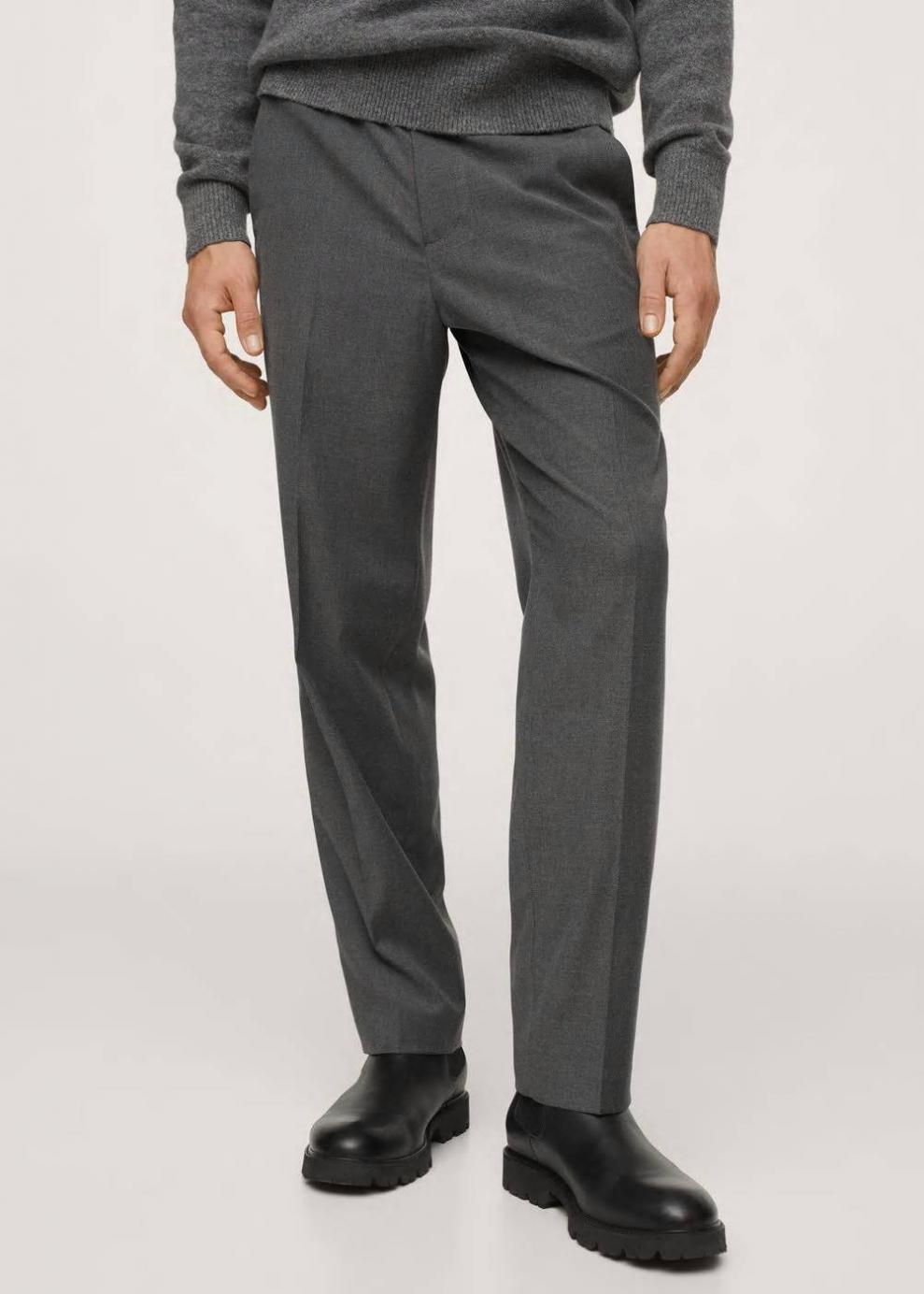 Hombre Pantalón traje slim fit cintura elástica Gris | Pantalones Mango