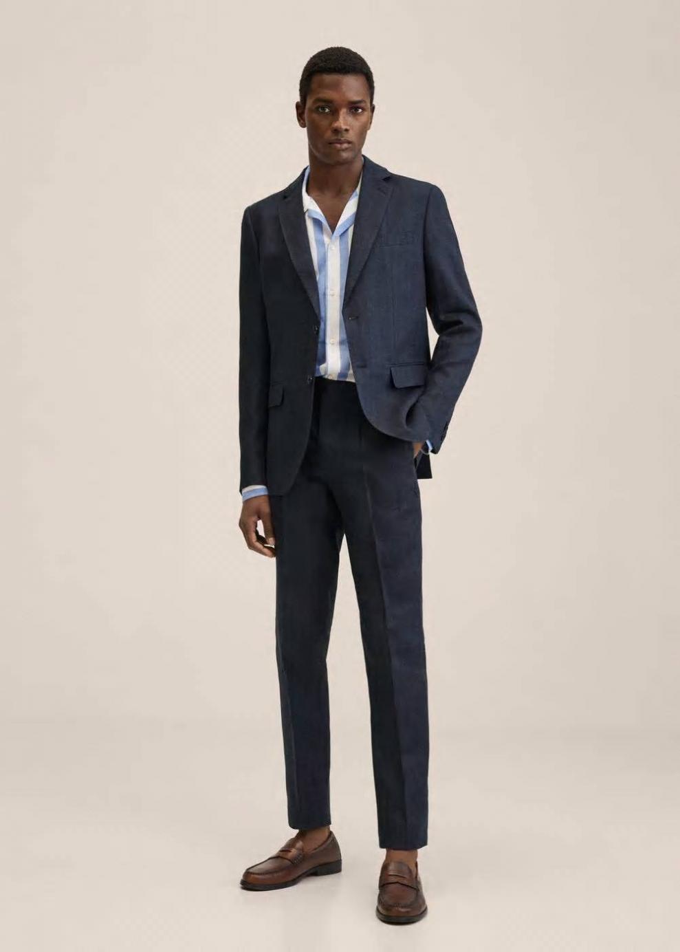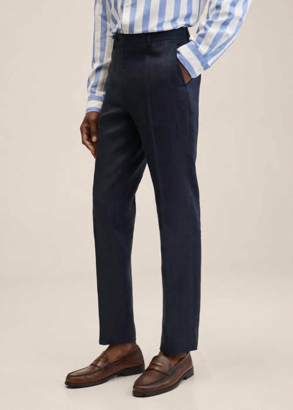 Hombre Pantalón traje slim fit lino Azul Marino Oscuro | Pantalones Mango