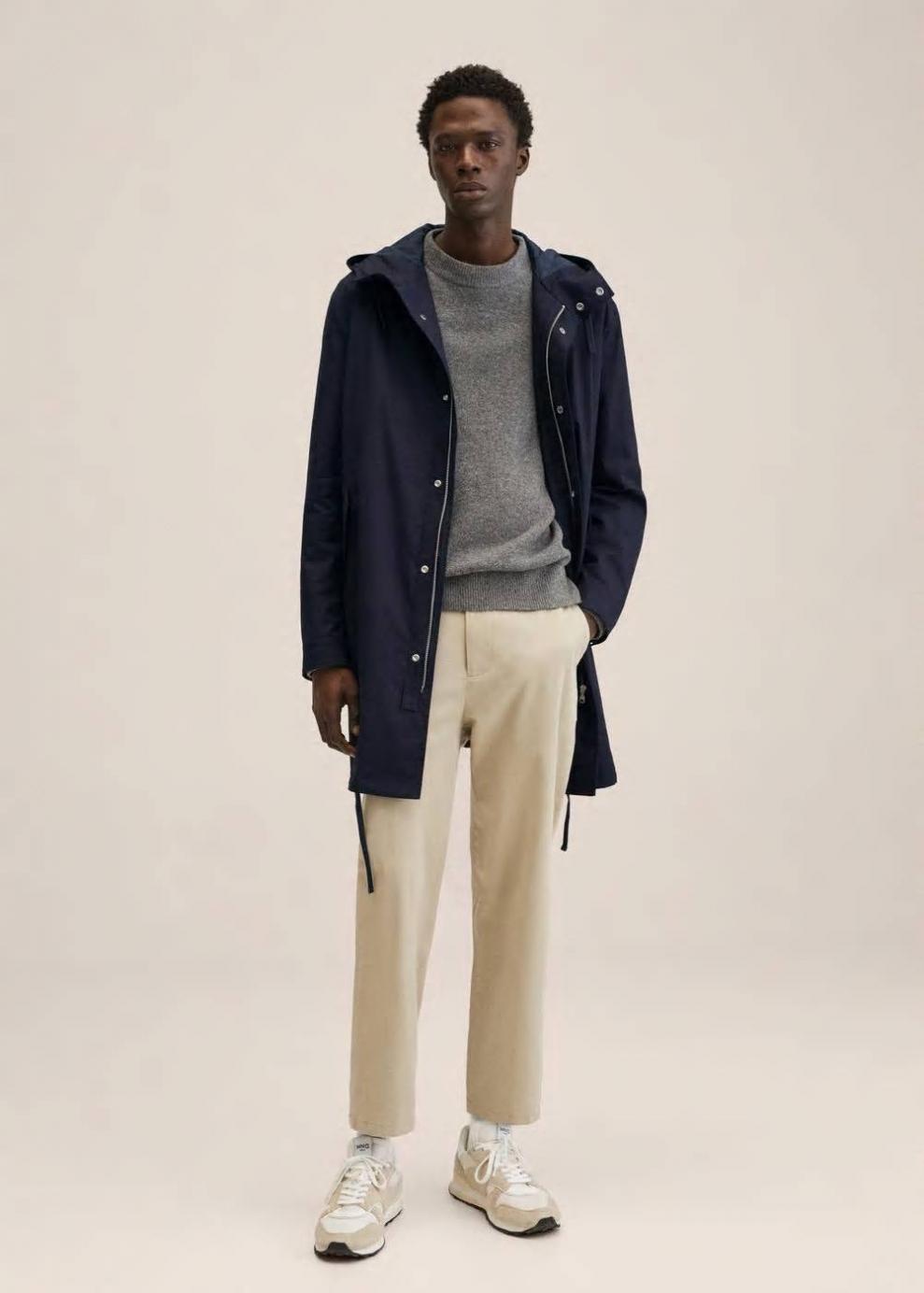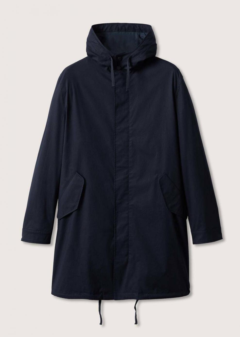 Diseño largo Tejido mezcla de algodón Water Repellent: Tejido técnico repelente al agua Capucha con cordón ajustable Dos bolsillos de solapa laterales Cierre de cremallera y botones a presión Forro interior Bolsillo interior El modelo mide 190 cm y lleva una talla M Las prendas etiquetadas como Committed son productos que han sido confeccionadas con fibras y/o procesos de producción sostenible, reduciendo así su impacto ambiental. El objetivo de Mango es respaldar la implementación de prácticas más comprometidas con el medio ambiente, aumentando así, el número de prendas sostenibles en su colección.
