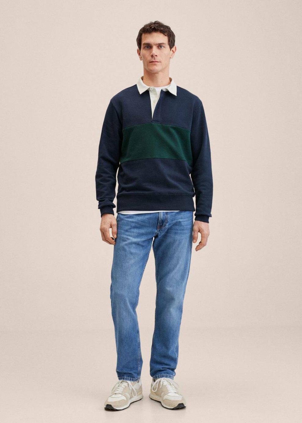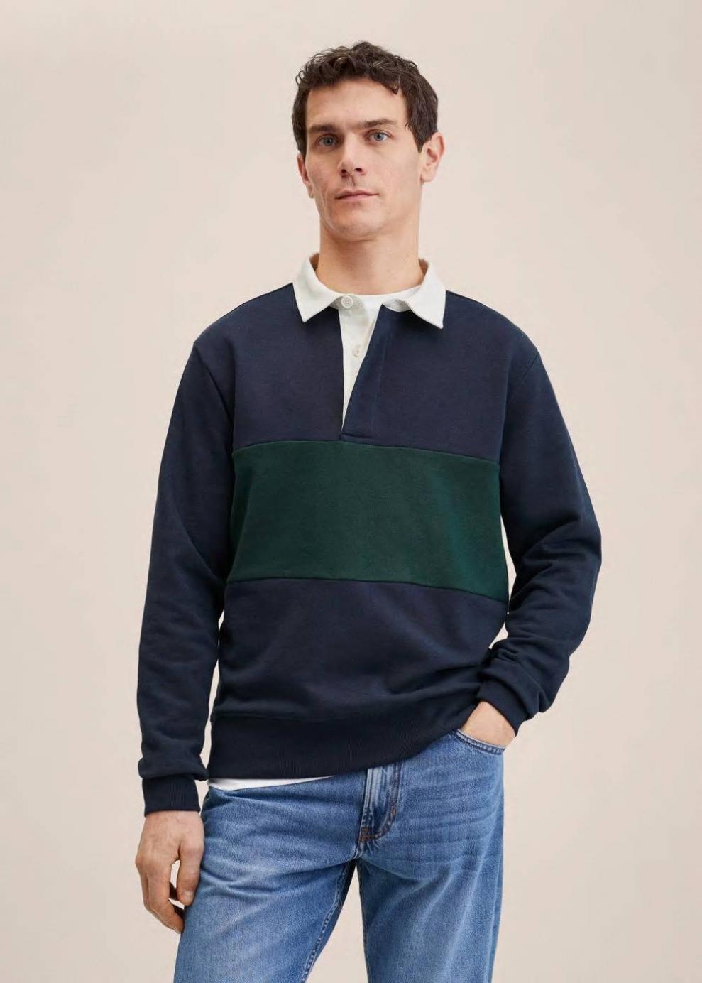 Regular fit Cuello pico Cierre en el cuello Tamaño mediano Diseño color block Diseño estándar Tejido de algodón sostenible Cuello polo Cierre de botones en el cuello Manga larga Terminaciones elásticas El modelo mide 185 cm y lleva una talla M Las prendas etiquetadas como Committed son productos que han sido confeccionadas con fibras y/o procesos de producción sostenible, reduciendo así su impacto ambiental. El objetivo de Mango es respaldar la implementación de prácticas más comprometidas con el medio ambiente, aumentando así, el número de prendas sostenibles en su colección.