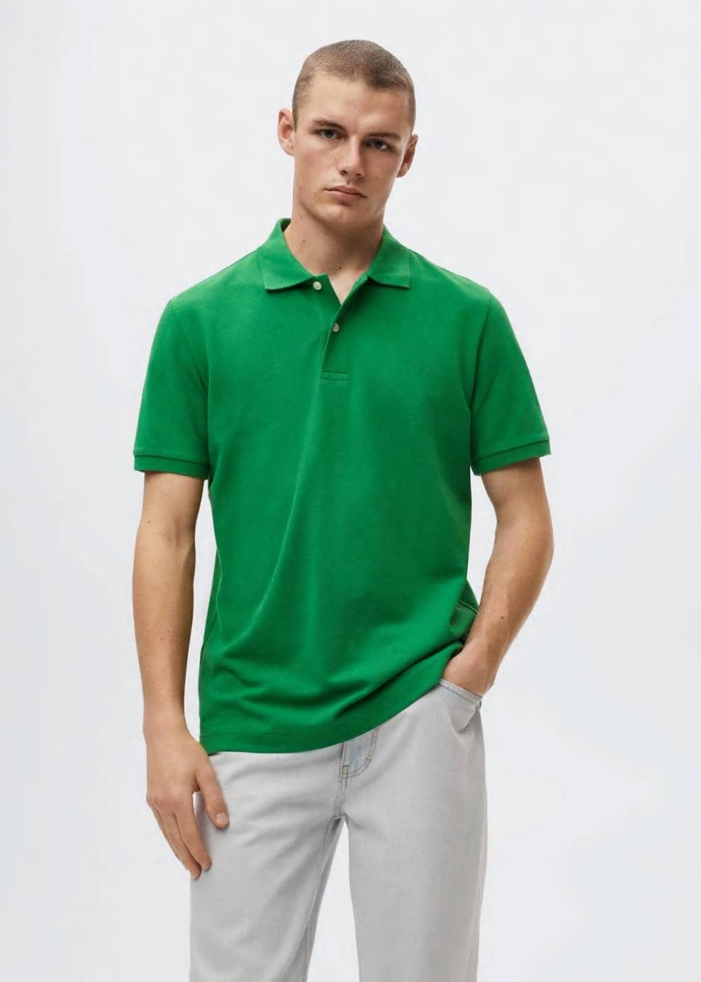 Tejido de algodón sostenible Cuello polo Manga corta con puños elásticos Cierre de botones Las prendas etiquetadas como Committed son productos que han sido confeccionadas con fibras y/o procesos de producción sostenible, reduciendo así su impacto ambiental. El objetivo de Mango es respaldar la implementación de prácticas más comprometidas con el medio ambiente, aumentando así, el número de prendas sostenibles en su colección.