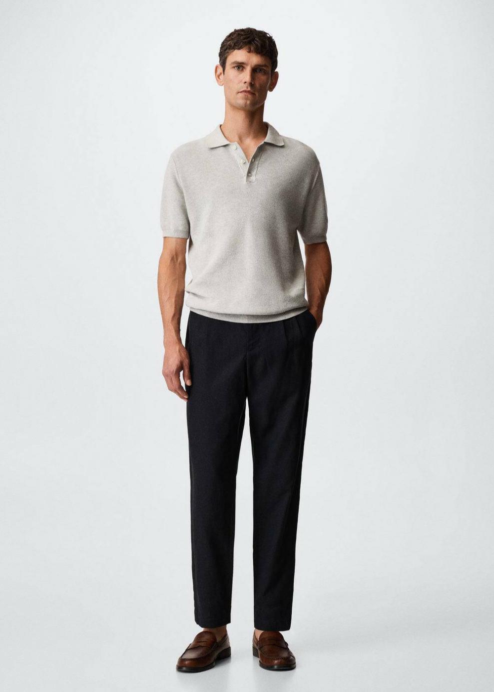 Tejido de punto fino Manga corta Cierre en el cuello Diseño estándar Diseño recto Tejido de algodón sostenible Tejido con estructura Cuello polo Manga corta con puños elásticos Terminaciones elásticas El modelo lleva una talla M Las prendas etiquetadas como Committed son productos que han sido confeccionadas con fibras y/o procesos de producción sostenible, reduciendo así su impacto ambiental. El objetivo de Mango es respaldar la implementación de prácticas más comprometidas con el medio ambiente, aumentando así, el número de prendas sostenibles en su colección.