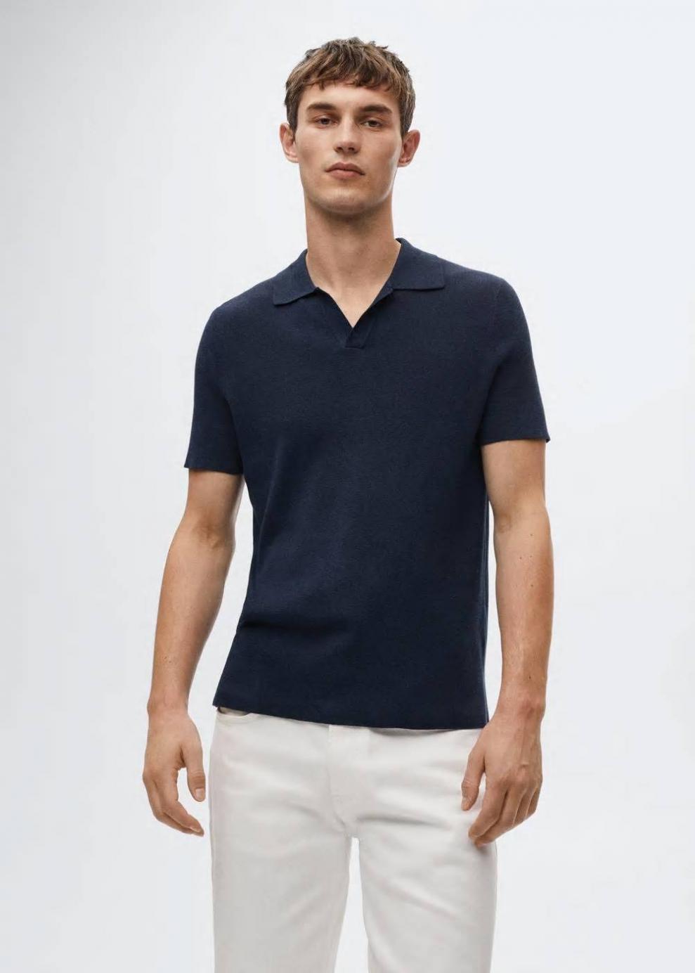 Diseño estándar Tejido con lino Tejido de punto fino Cierre en el cuello Diseño recto Tejido stretch Tejido fluido Cuello polo Cuello pico Manga corta Aberturas laterales El modelo mide 187 cm y lleva una talla M Las prendas etiquetadas como Committed son productos que han sido confeccionadas con fibras y/o procesos de producción sostenible, reduciendo así su impacto ambiental. El objetivo de Mango es respaldar la implementación de prácticas más comprometidas con el medio ambiente, aumentando así, el número de prendas sostenibles en su colección.