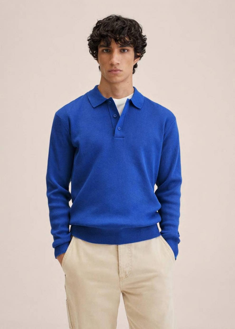 Tejido mezcla de algodón sostenible Tejido de punto fino Cuello polo Cierre de botones Manga larga Terminaciones elásticas en canalé El modelo mide 185 cm y lleva una talla M Las prendas etiquetadas como Committed son productos que han sido confeccionadas con fibras y/o procesos de producción sostenible, reduciendo así su impacto ambiental. El objetivo de Mango es respaldar la implementación de prácticas más comprometidas con el medio ambiente, aumentando así, el número de prendas sostenibles en su colección.