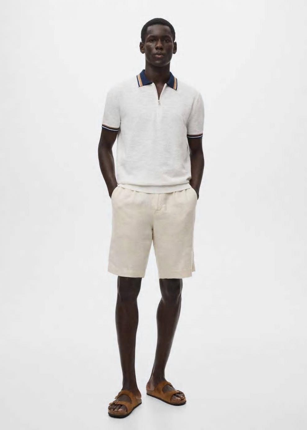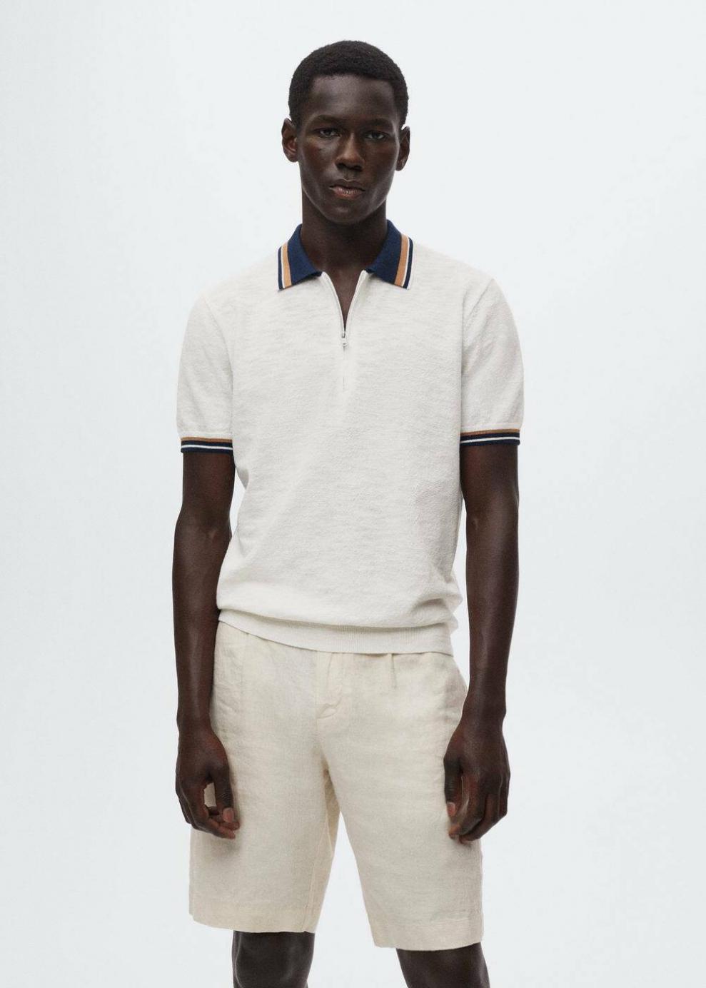 Tejido mezcla de algodón Tejido de punto fino Cuello polo Cuello en contraste Manga corta Cierre de cremallera El modelo mide 187 cm y lleva una talla M Las prendas etiquetadas como Committed son productos que han sido confeccionadas con fibras y/o procesos de producción sostenible, reduciendo así su impacto ambiental. El objetivo de Mango es respaldar la implementación de prácticas más comprometidas con el medio ambiente, aumentando así, el número de prendas sostenibles en su colección.