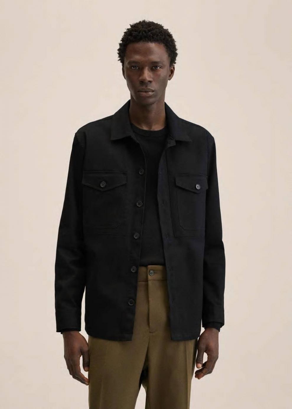 Exclusivo Online Regular fit Tejido mezcla de algodón sostenible Cuello bowling Manga larga con puños abotonados Dos bolsillos de parche con botón en la parte delantera Cierre de botones El modelo mide 190 cm y lleva una talla M Las prendas etiquetadas como Committed son productos que han sido confeccionadas con fibras y/o procesos de producción sostenible, reduciendo así su impacto ambiental. El objetivo de Mango es respaldar la implementación de prácticas más comprometidas con el medio ambiente, aumentando así, el número de prendas sostenibles en su colección.