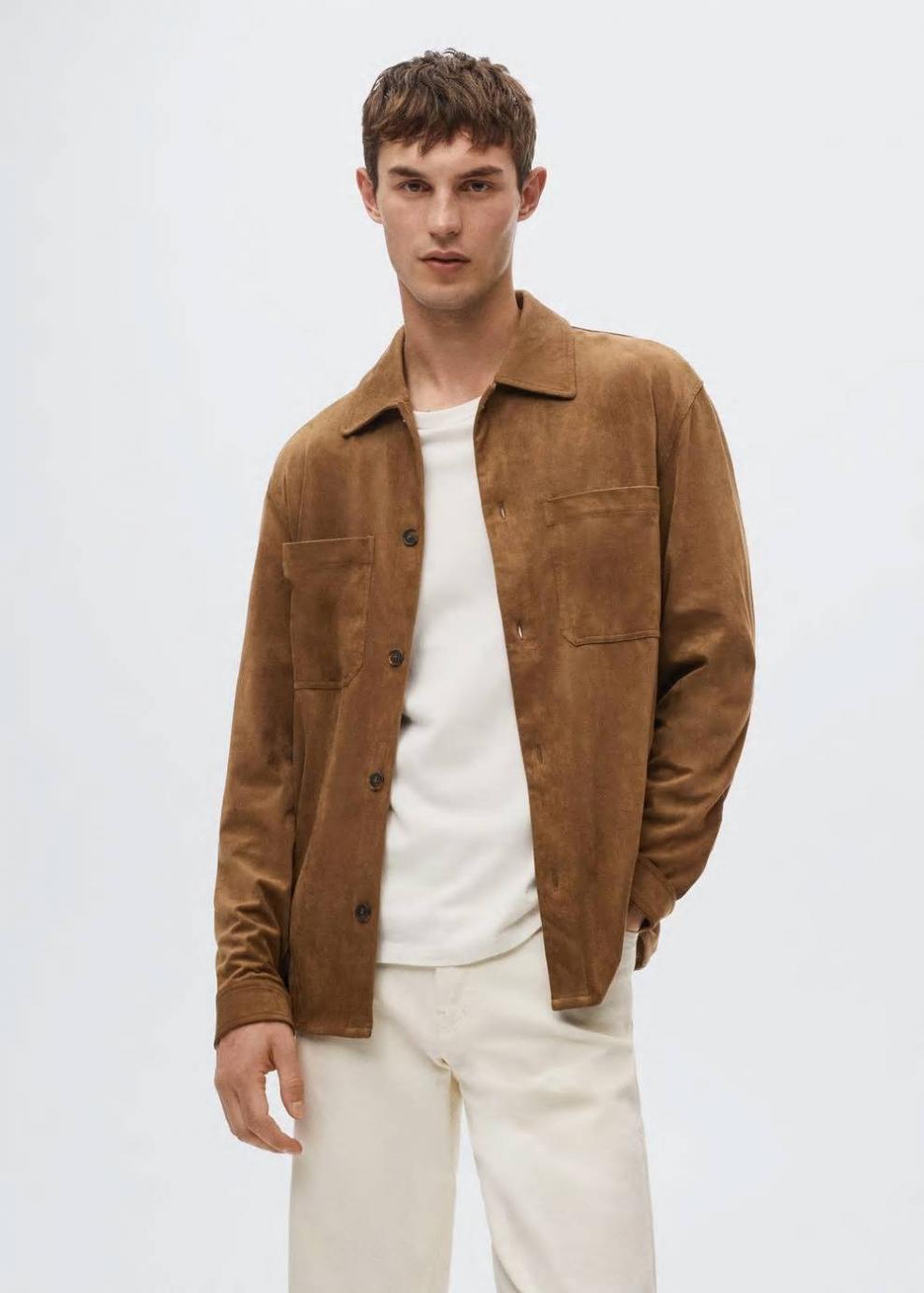 Efecto ante Cuello camisero Manga larga Dos bolsillos de parche en el pecho Cierre de botones El modelo mide 187 cm y lleva una talla M