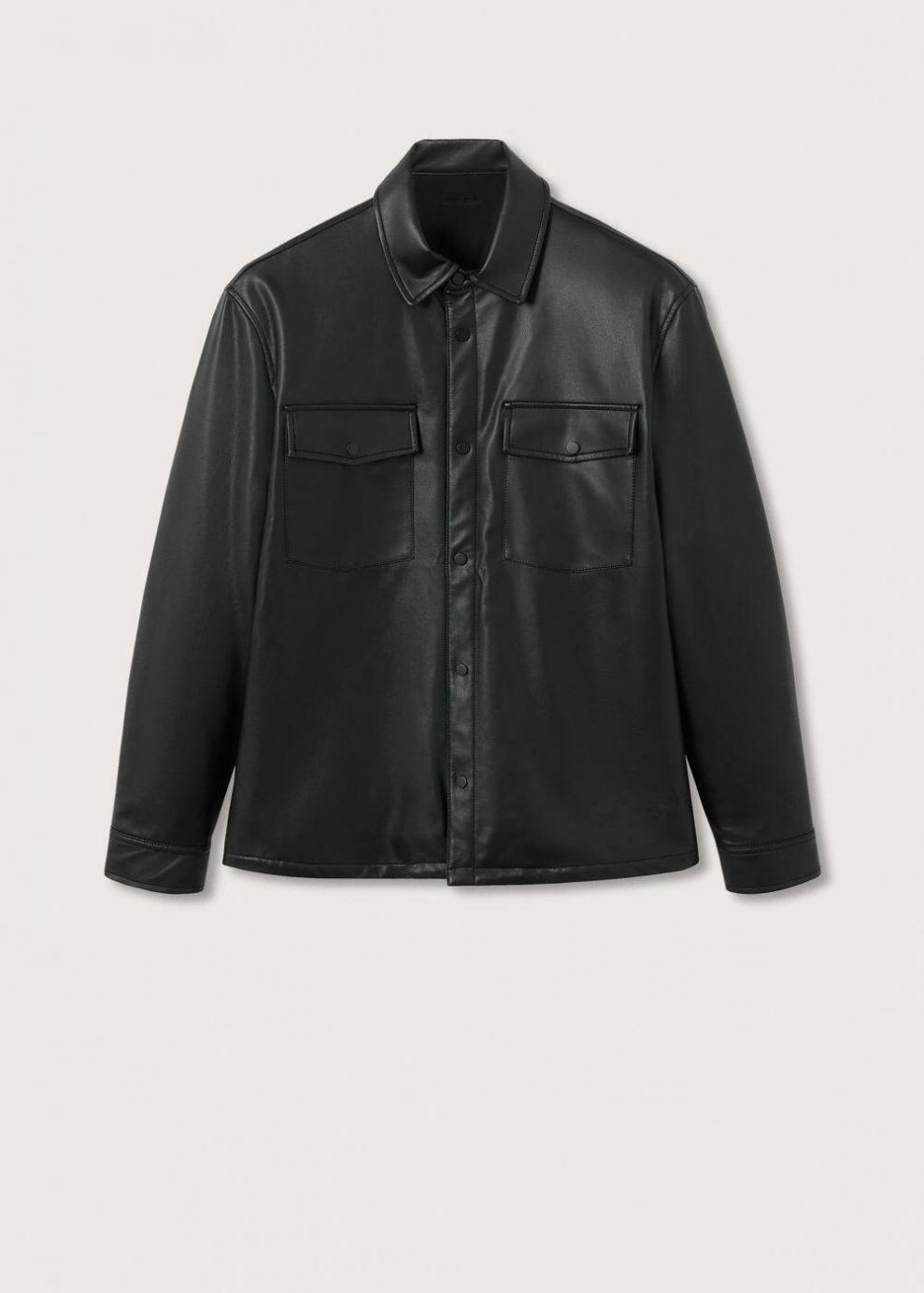 Exclusivo Online Efecto piel Cuello camisero Dos bolsillos de solapa con botón en el pecho Manga larga Cierre de botones a presión El modelo mide 185 cm y lleva una talla M…