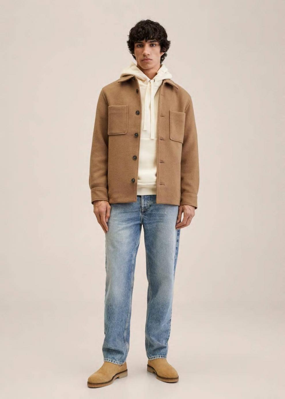 Regular fit Tejido mezcla de lana Cuello camisero Manga larga Bolsillos de parche Cierre de botones en la parte delantera Manga larga con puños abotonados El modelo mide 183 cm y lleva una talla M Las prendas etiquetadas como Committed son productos que han sido confeccionadas con fibras y/o procesos de producción sostenible, reduciendo así su impacto ambiental. El objetivo de Mango es respaldar la implementación de prácticas más comprometidas con el medio ambiente, aumentando así, el número de prendas sostenibles en su colección.